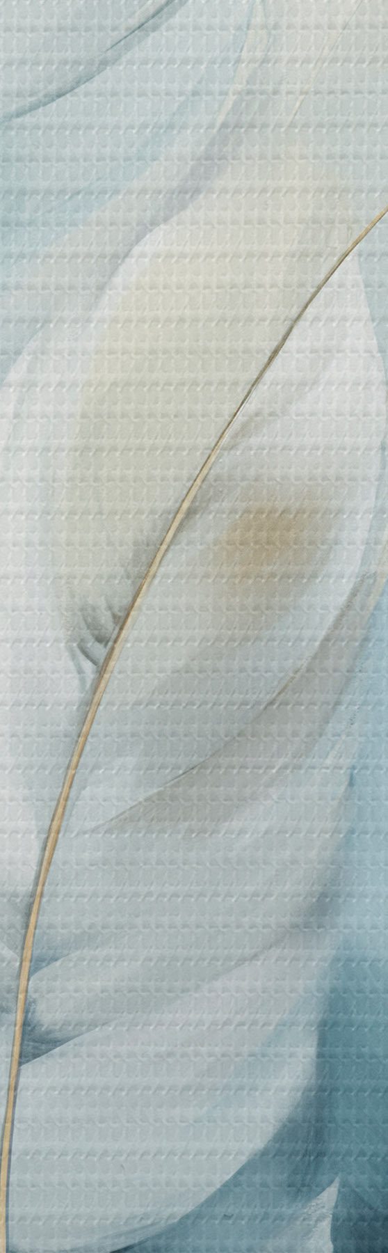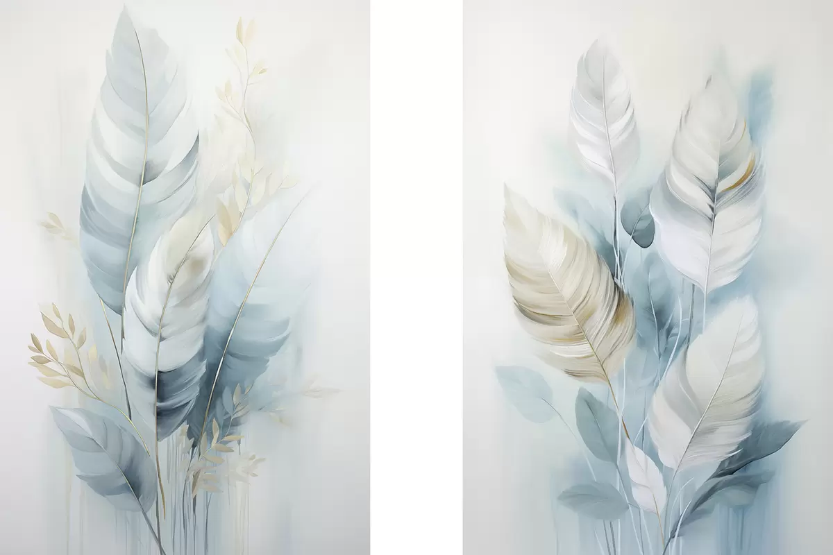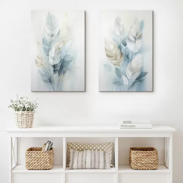 Paveikslas Didelės, švelnios plunksnos mėlynų ir baltų atspalvių su subtiliais smėlio spalvos lapais Nr m30325