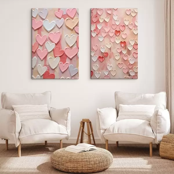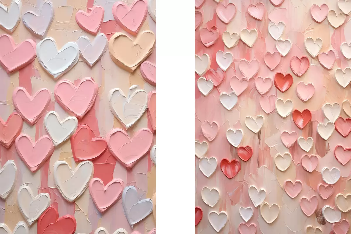 Paveikslas Širdelės įvairių persikų ir rožinių atspalvių, tapytos tekstūruotu stiliumi Nr m30326