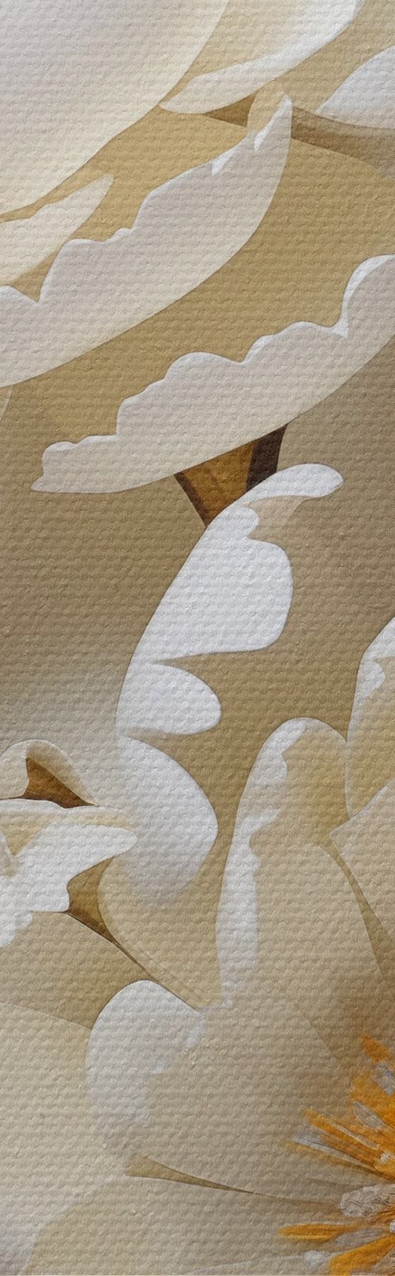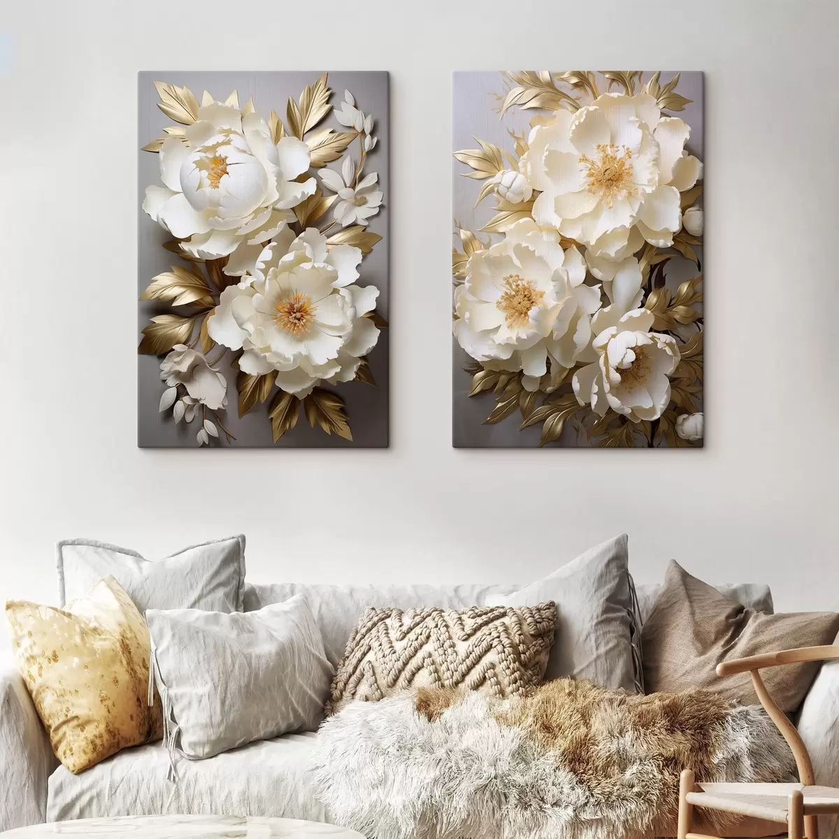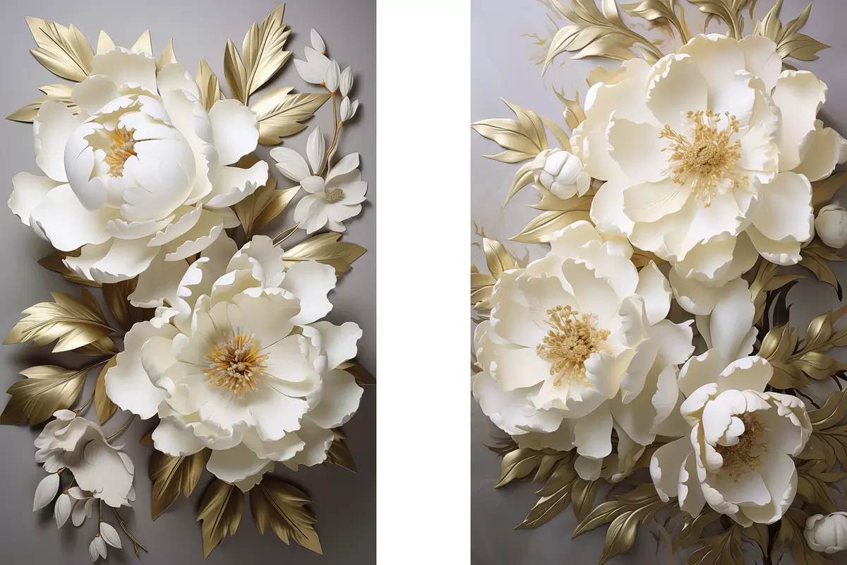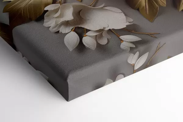Paveikslas Didelės baltos bijūnės su geltonais lapais ant pilko fono Nr m30327
