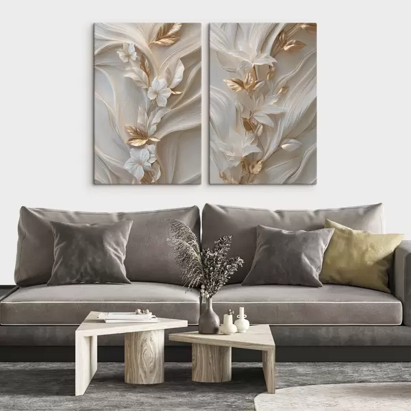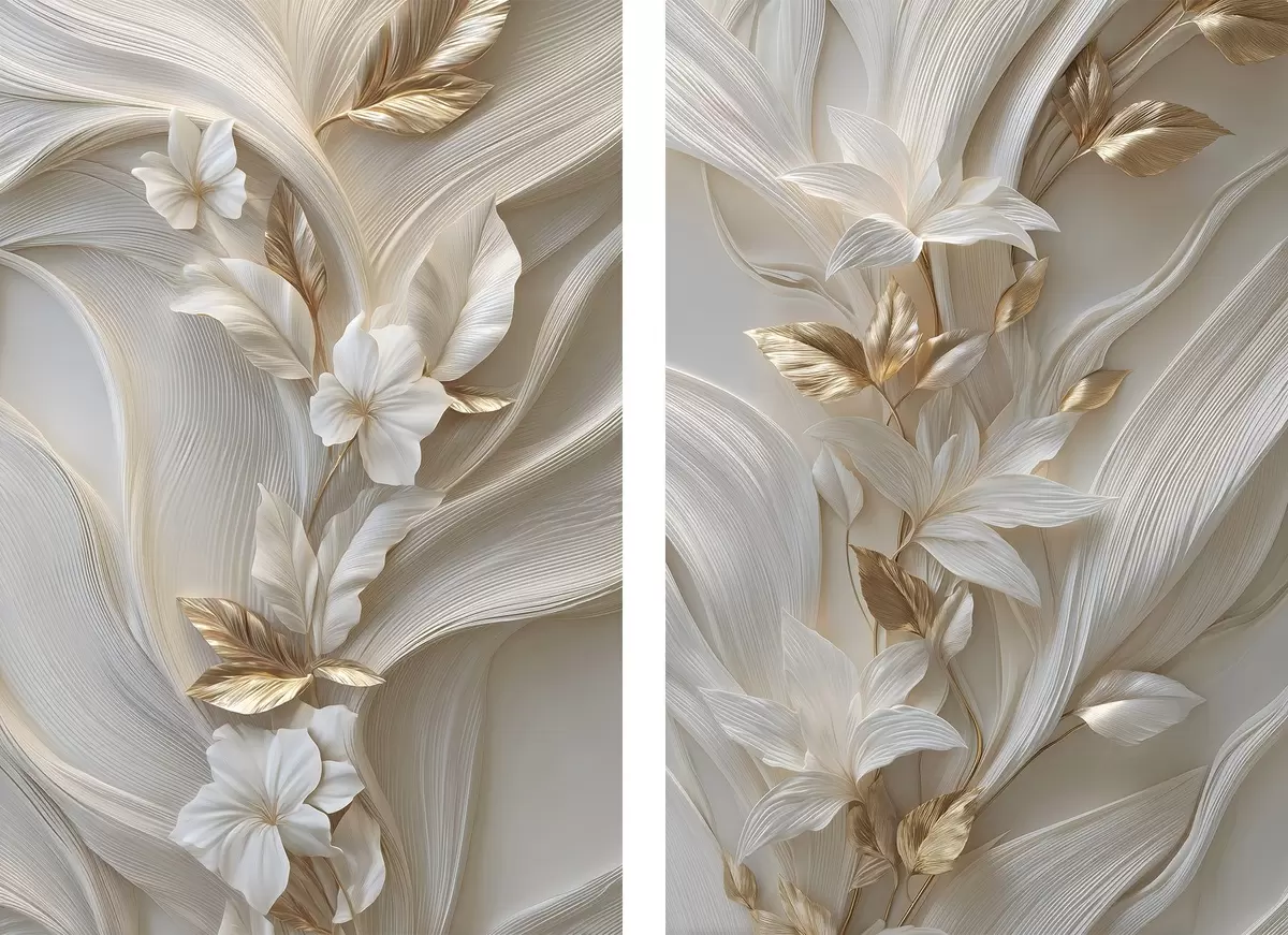 Paveikslas puikus trimatės lapo, tekstūrų ir gėlių atvaizdas Nr m30334