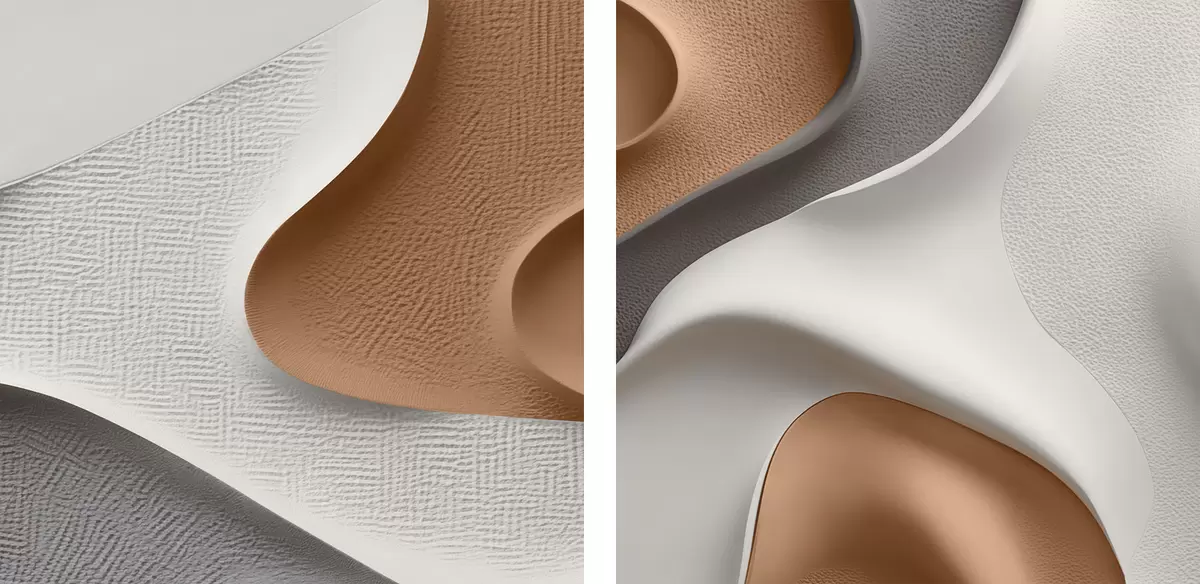 Standartas - lygi, grūdėta sintetinė medžiaga su blizgiu paviršiumi.