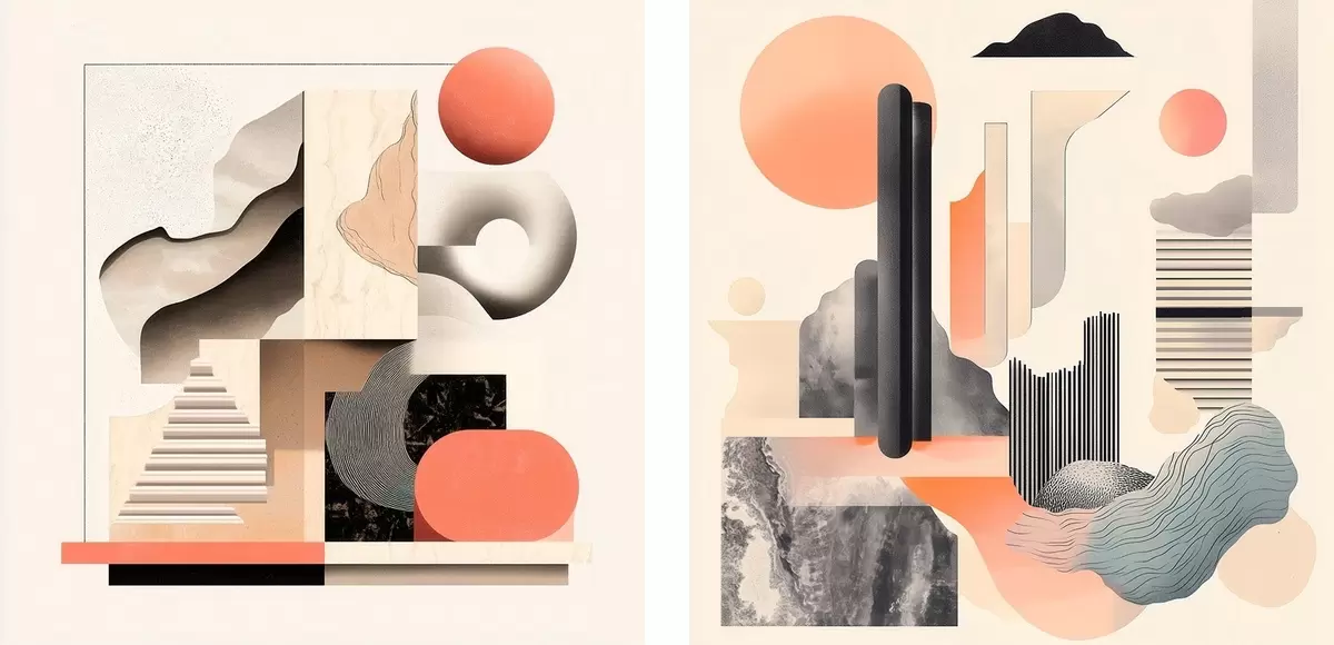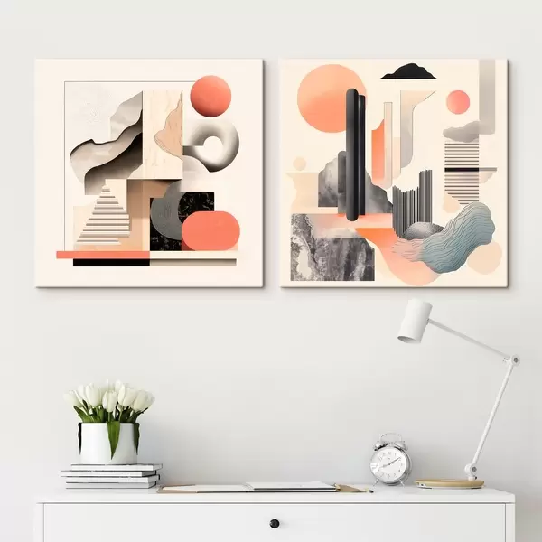 Paveikslas Geometrinė abstrakcija su architektūriniais elementais minimalistiniu stiliumi Nr m30348