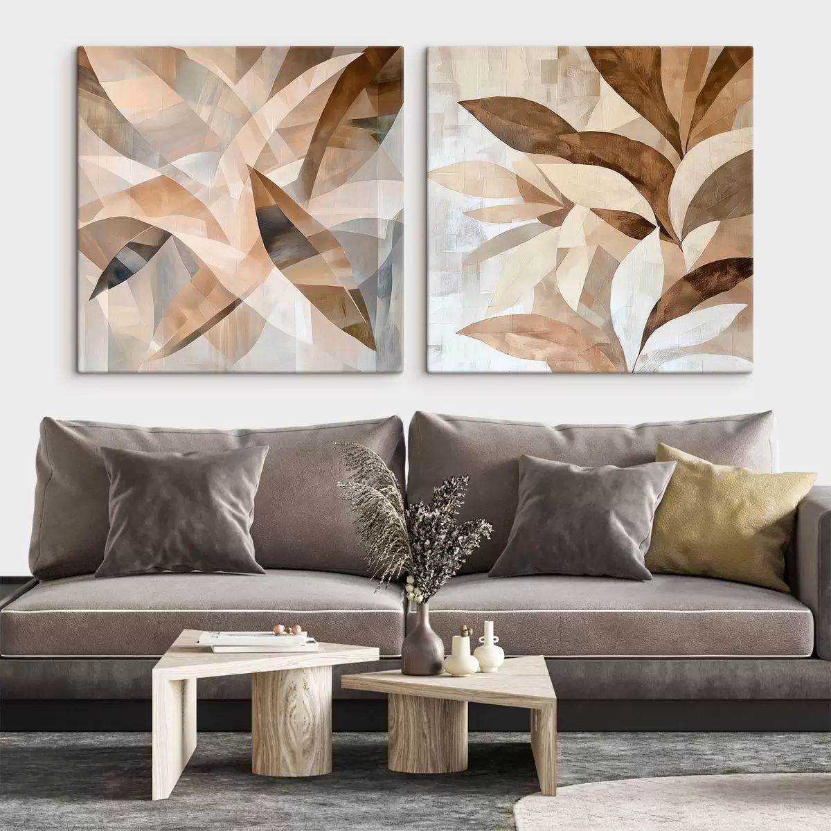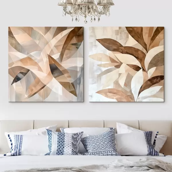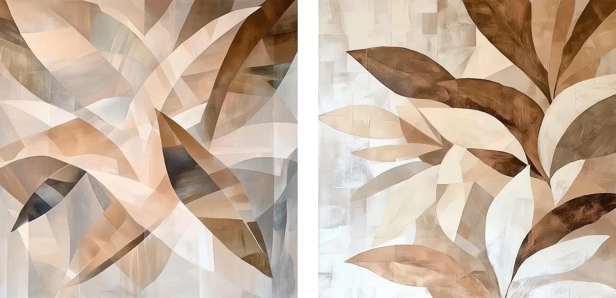 Paveikslas Stilizuoti augalai šiltų smėlio atspalvių, pavaizduoti šiuolaikiniu interjero iliustracijų stiliumi Nr m30350