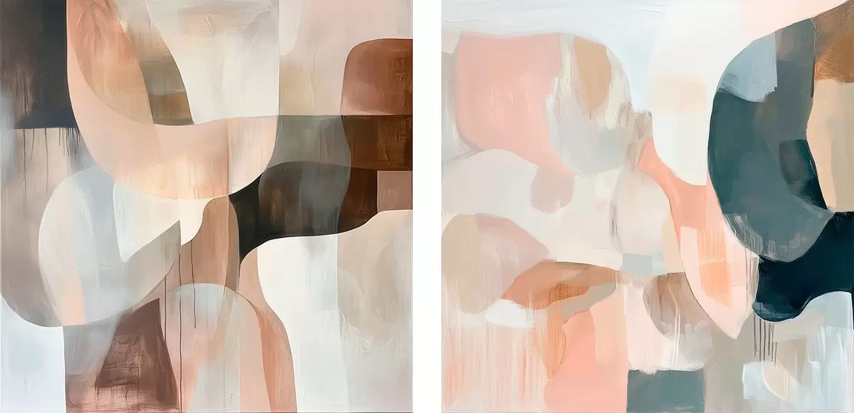Paveikslas Minimalistinė kompozicija smėlio-rožiniais ir pilkais atspalviais, atlikta meniniu stiliumi Nr m30356
