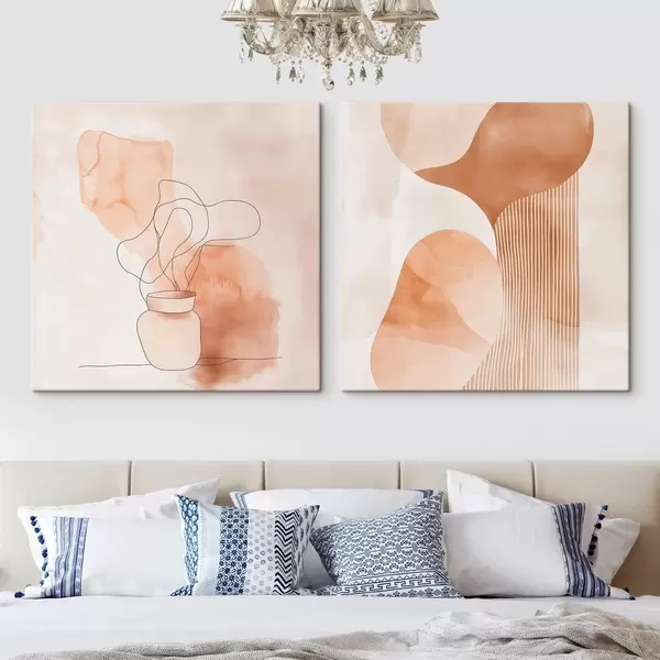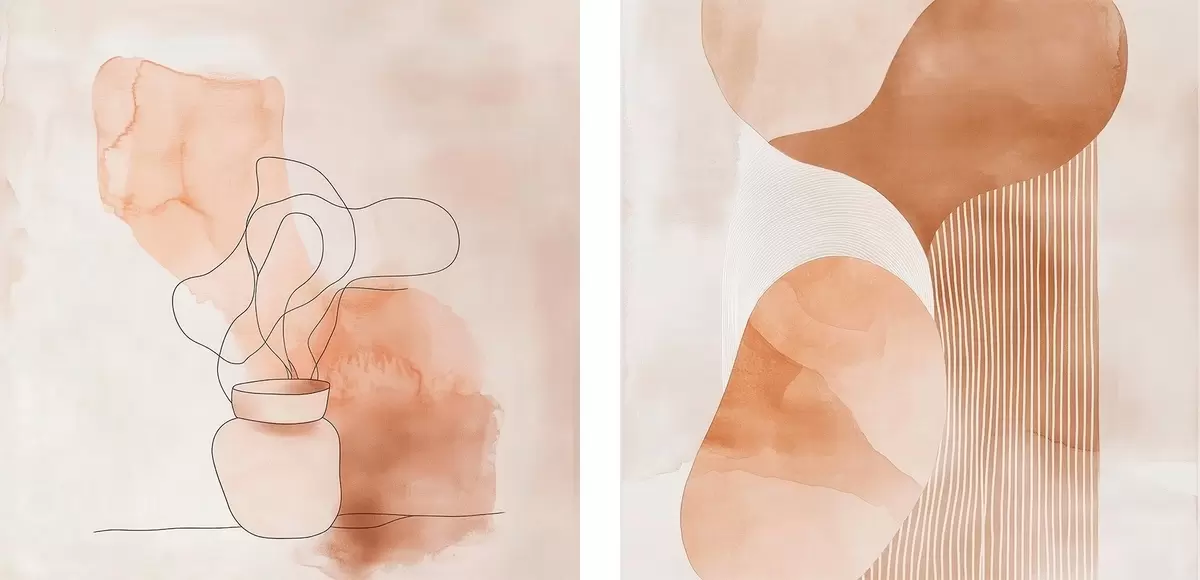 Paveikslas Abstrakčios formos smėlio-persikų spalvų paletėje su linijiniais akcentais minimalistiniu stiliumi Nr m30361