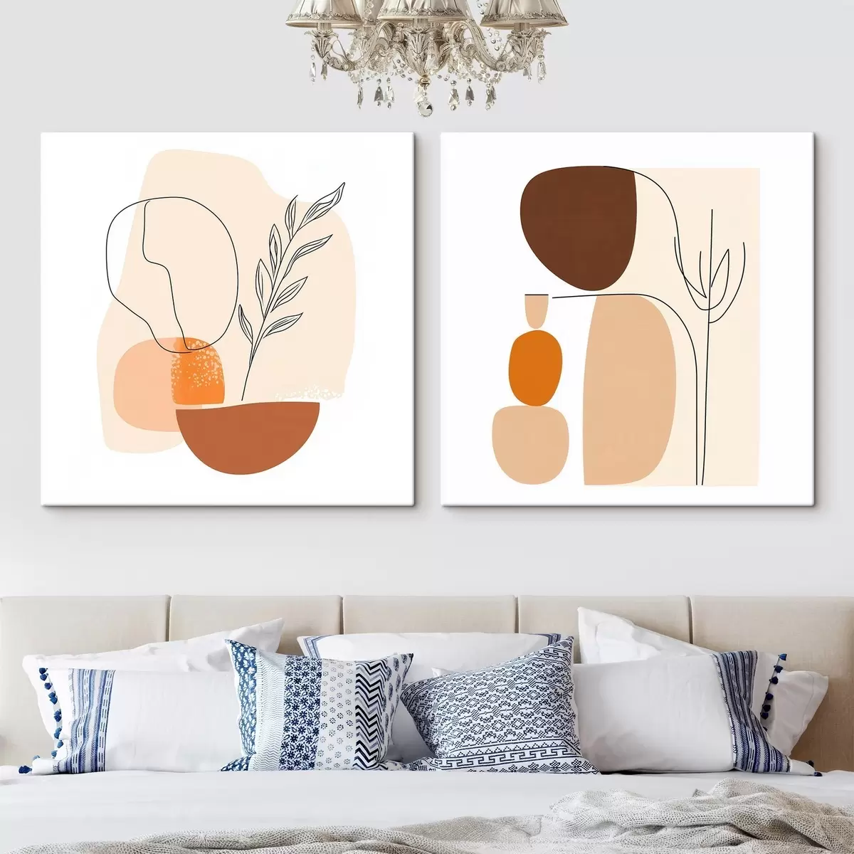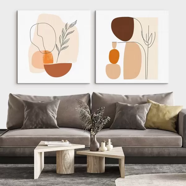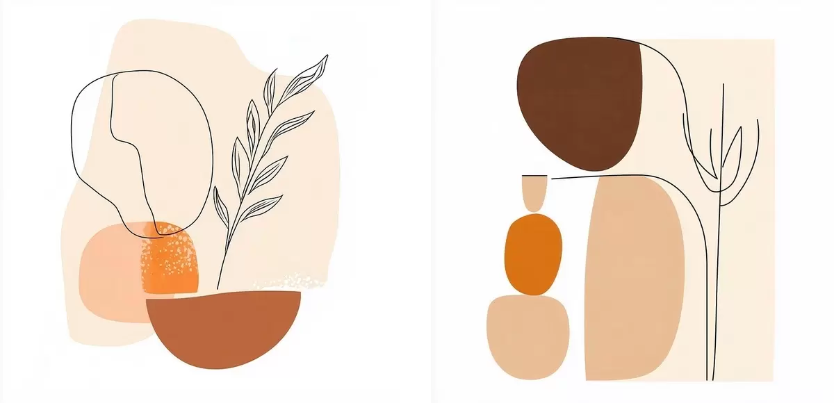 Paveikslas Abstrakčios gėlės šiltų smėlio ir koralų atspalvių paletėje: iliustracija minimalistiniu stiliumi Nr m30362