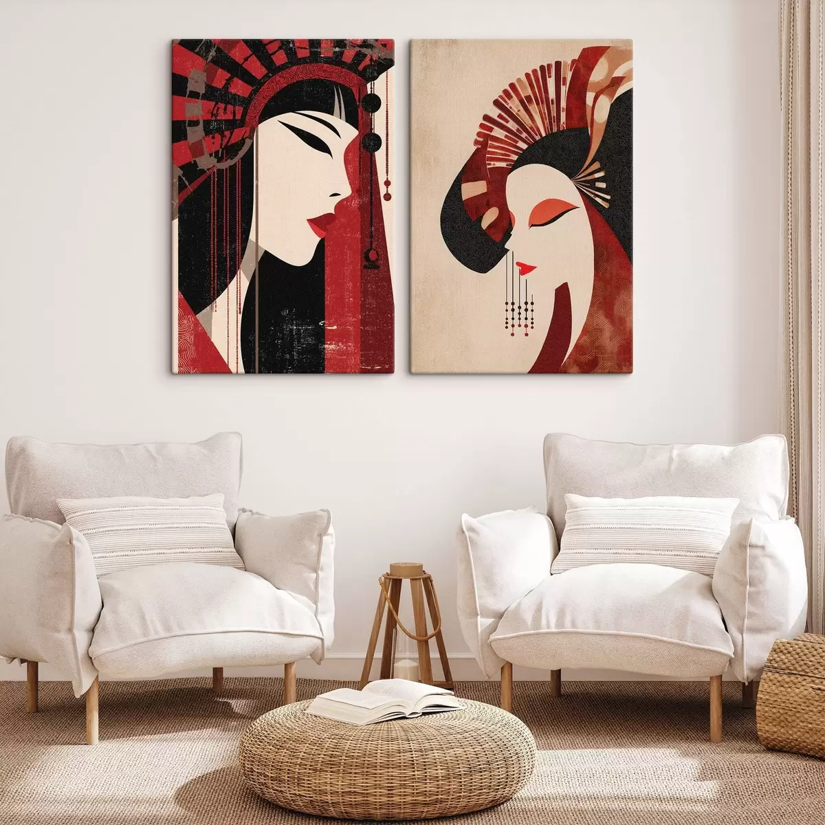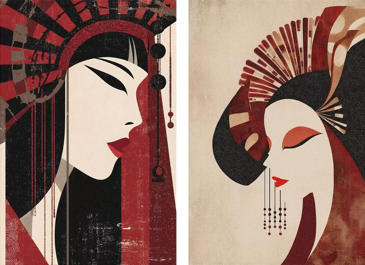 Paveikslas stilizuotas moters portretas, įkvėptas japonų ir art deco estetikos Nr m30431