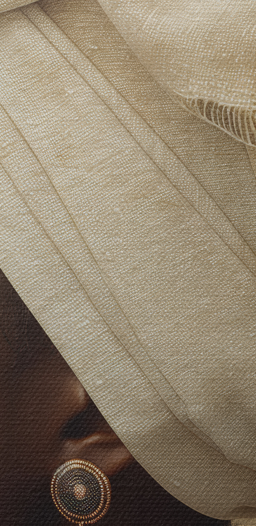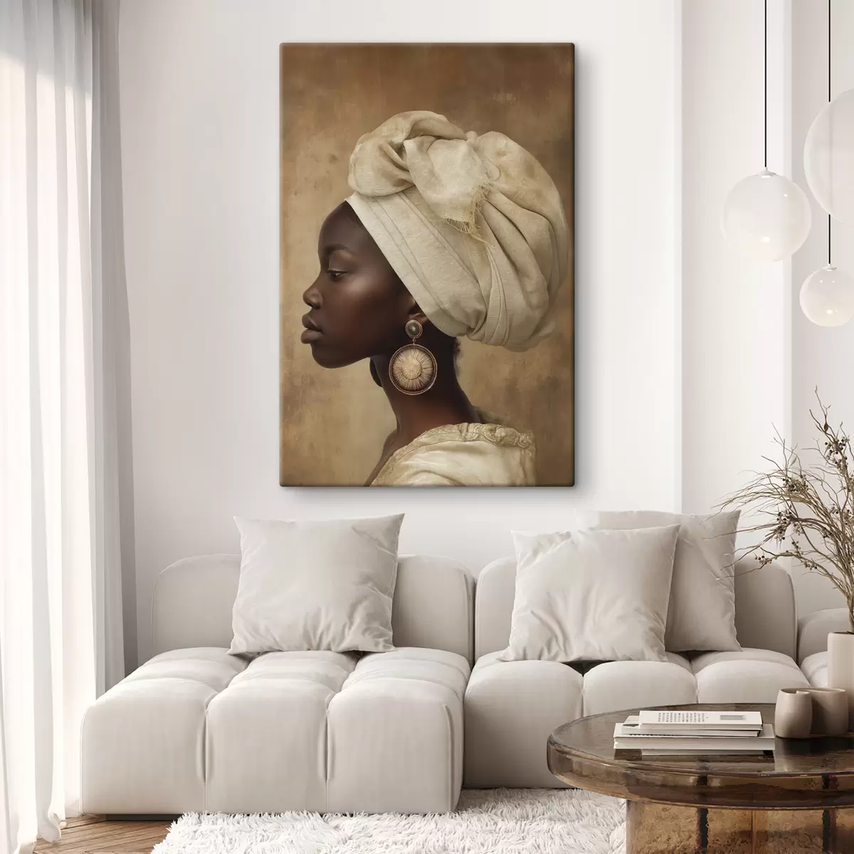 Paveikslas smėlio spalvos afrikietiško stiliaus moters portretas profilyje su dideliais auskarais Nr s26120