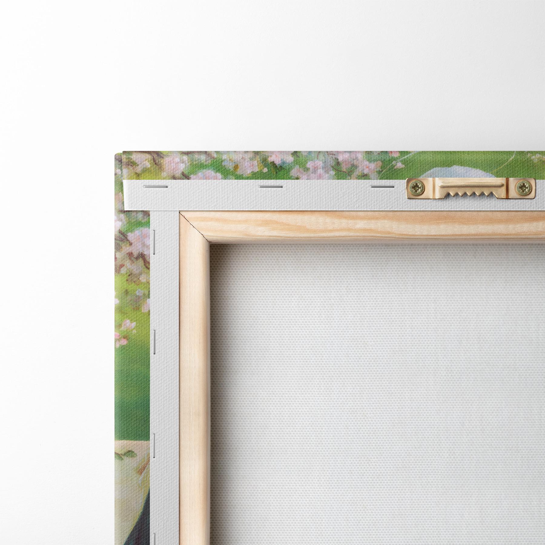 Paveikslą galima pakabinti iš karto jį gavus. Paveikslas bus ištemptas ant 2 cm pločio medinių neštuvų.