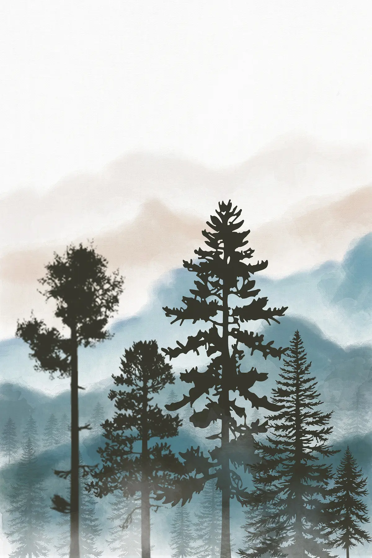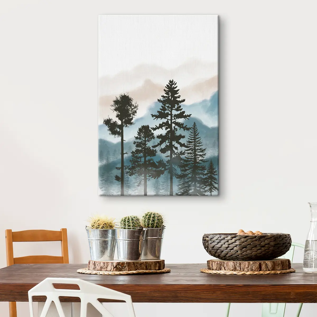 Paveikslėlis Rūko apgaubtas miško peizažas švelniomis spalvomis s36605