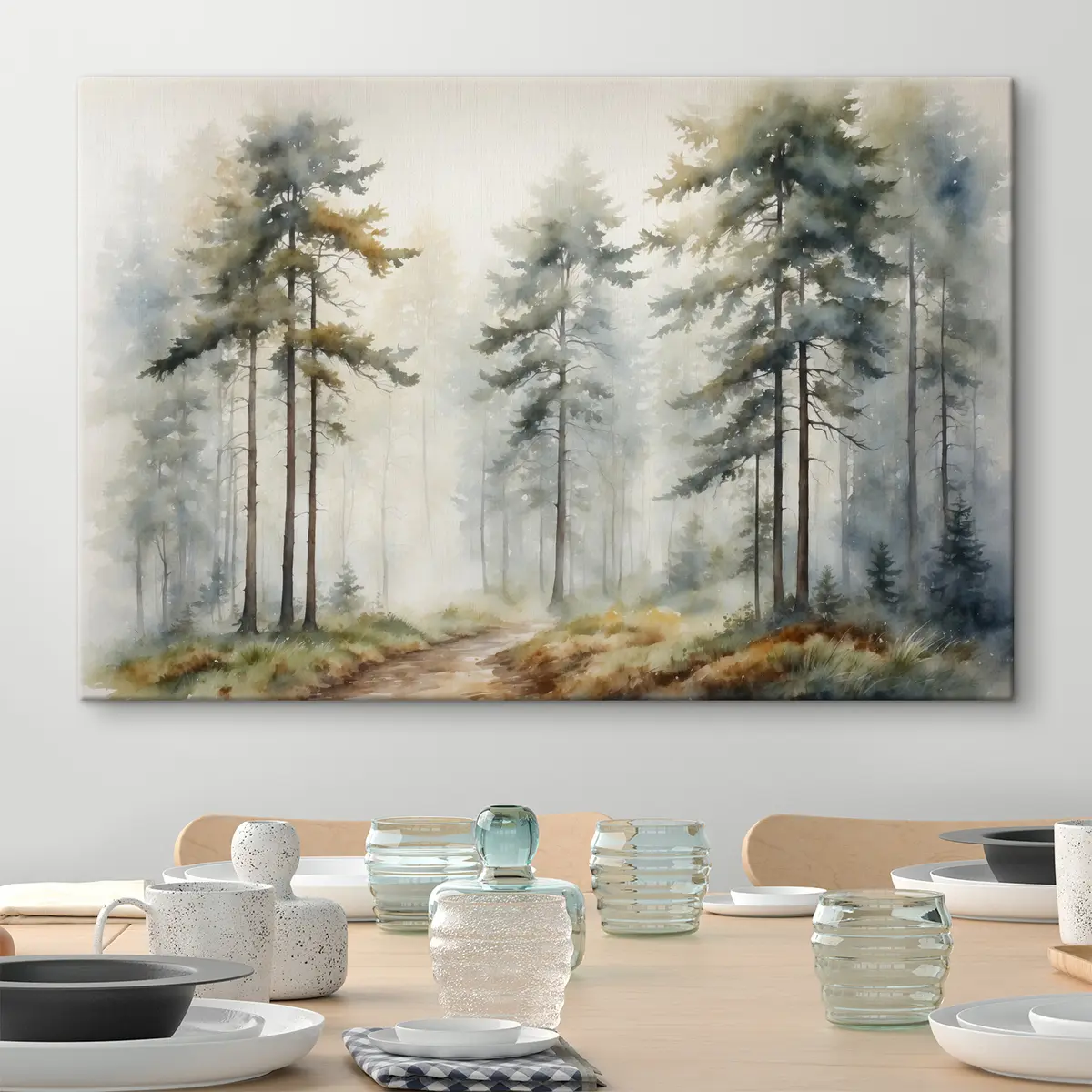 Paveikslas Rūko apgaubtas miško takas tarp aukštų medžių Nr s37338