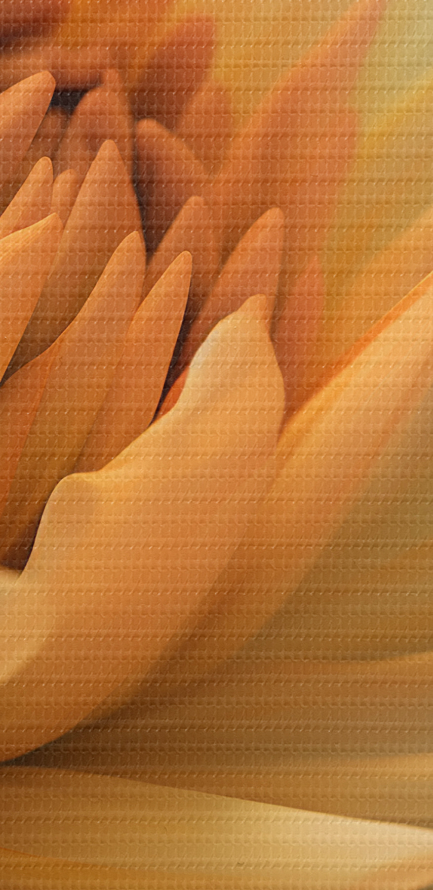 Galima užsakyti trijų rūšių medžiagą: "Economic Canvas" - tanki ir patvari medžiaga skaitmeninei spaudai, identiška dailininko drobės medžiagai, vandeniui atsparus paviršius, tikroviškas detalių atkūrimas, vidutinio grūdėtumo medžiaga. Premium Canvas - tekstūra primena dailininko drobę (susipynę smulkūs siūlai). Minkštas, detalus vaizdo atkūrimas ant matinio paviršiaus. Eco-Premium - aukštos kokybės 100 % medvilninis audinys. Dėl natūralių medvilnės pluoštų medžiaga yra patvari ir atspari nusidėvėjimui. Puikus spalvų atkūrimas ir detalumas.