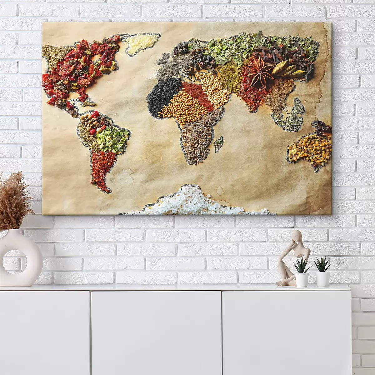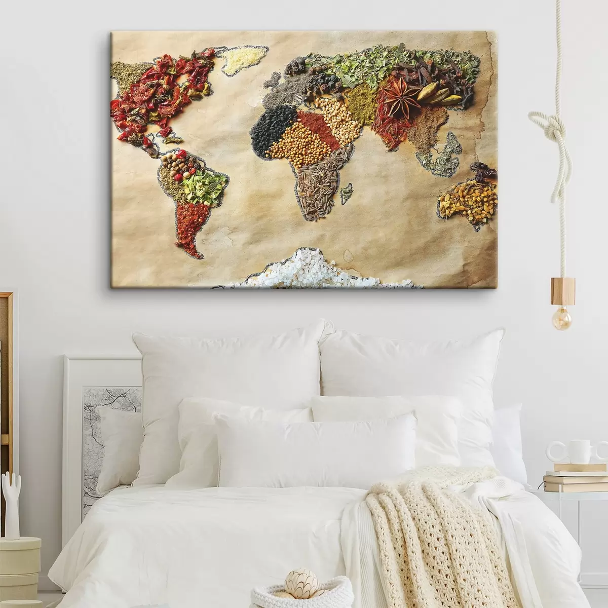 Paveikslas Pasaulio žemėlapis, sudarytas iš skirtingų prieskonių Nr s37486