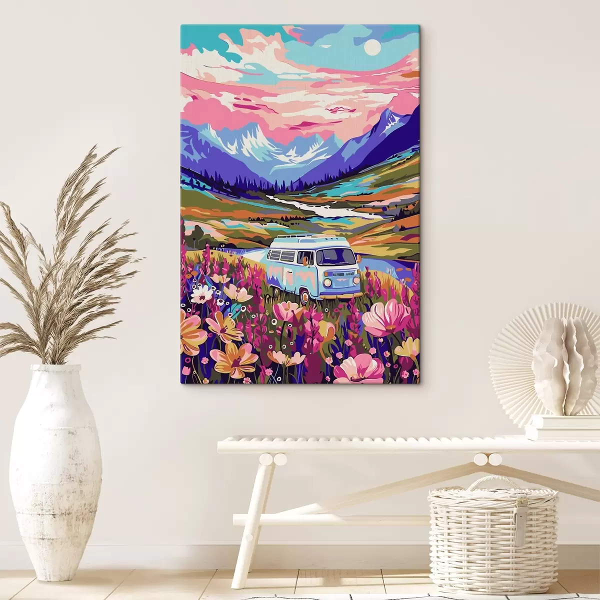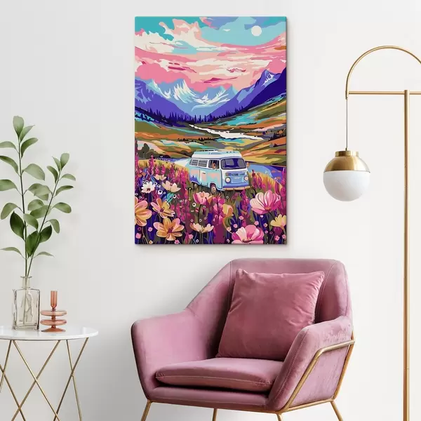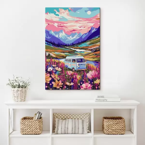 Paveikslas Per gėlių lauką važiuojantis furgonas Nr s38260