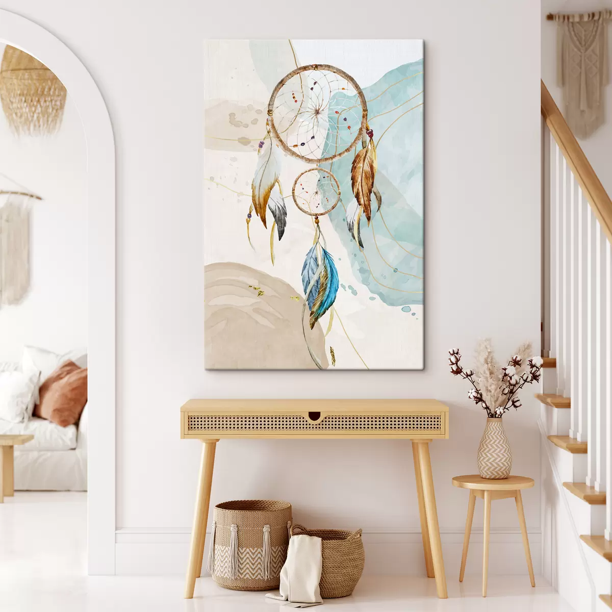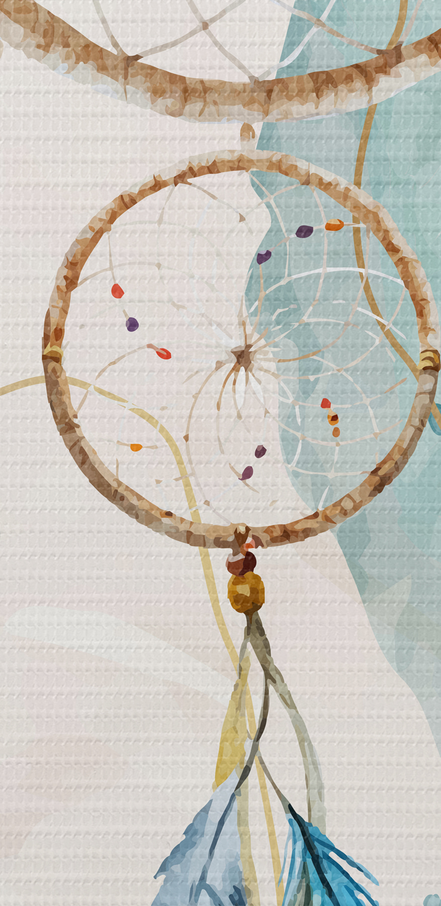 Paveikslas akvarelė, sapnų gaudyklė, plunksnos, pastelė Nr s38330