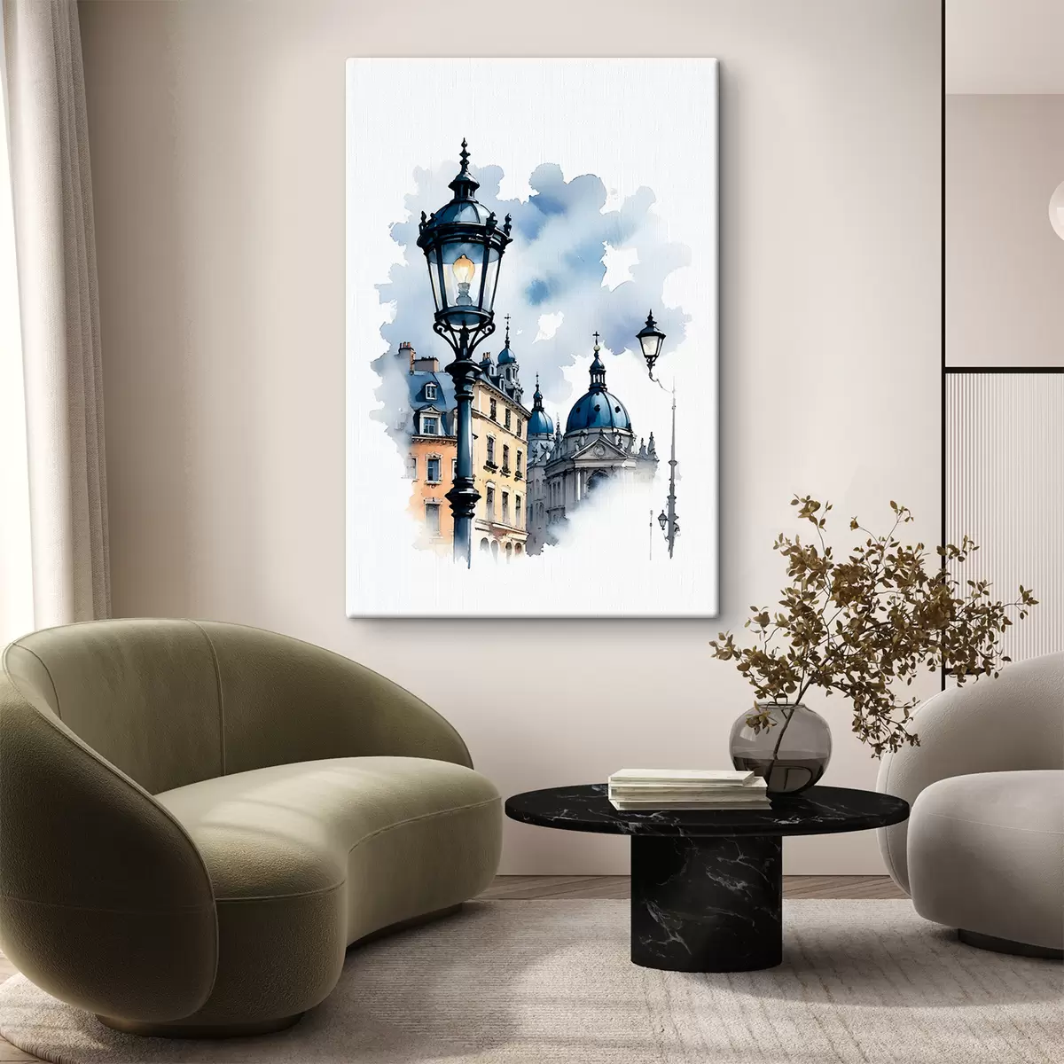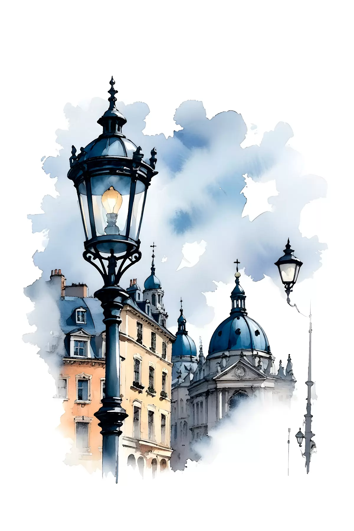 Paveikslas Puošnus gatvės šviestuvas su kupolo formos pastatu debesuotą dieną Nr s38364