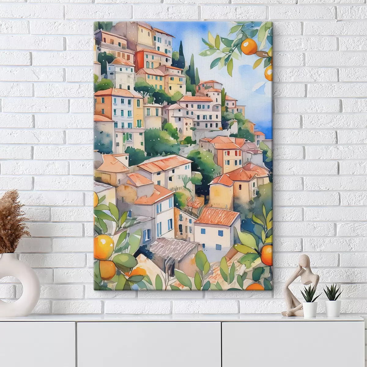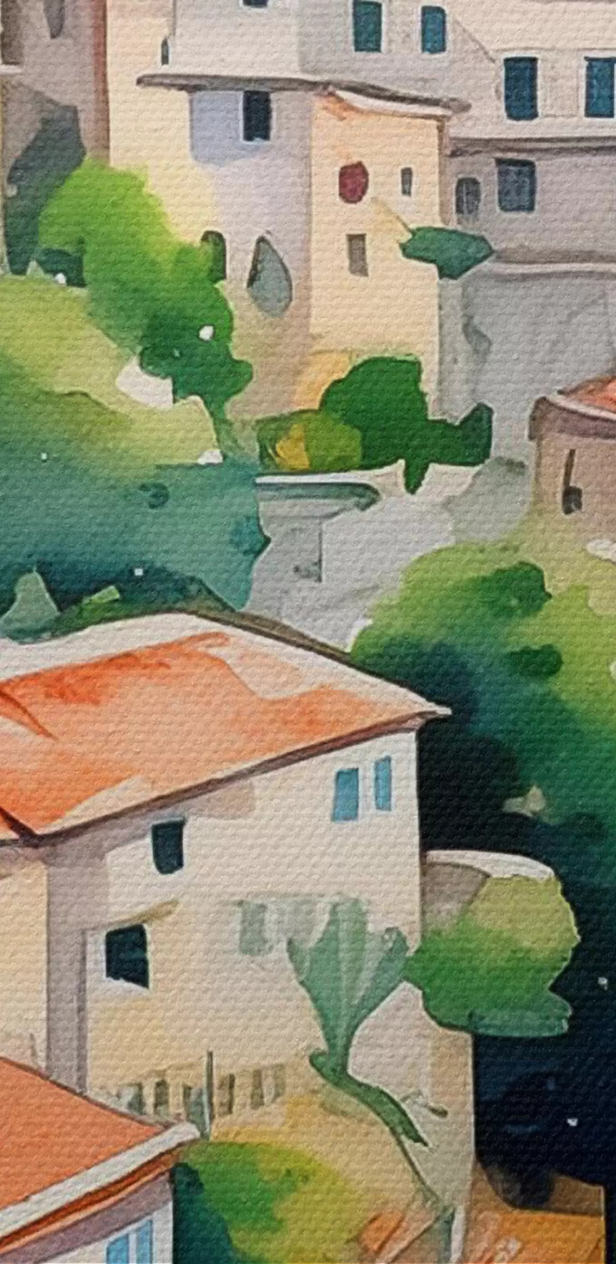 Paveikslas Viduržemio jūros architektūra, akvarelė, vasara, apelsinai, senamiestis Nr s38396