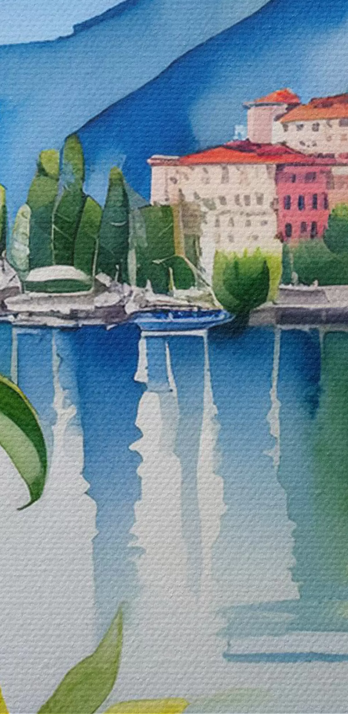 Paveikslas Komo ežeras, akvarelė, Italija, vasara, kalnai, citrinmedis, jūra, senamiestis Nr s38398