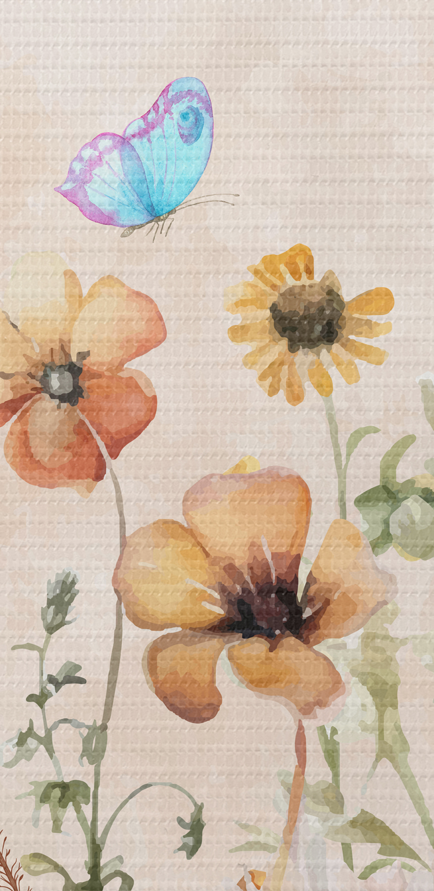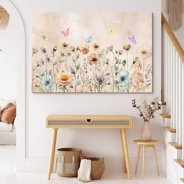 Paveikslas lauko gėlės su akvarelėmis, ryškiais drugeliais, pastelėmis Nr s38441