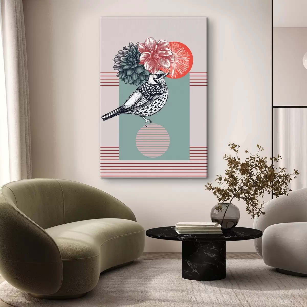 Paveikslas Paukštis su gėlėmis ant galvos Nr s38442