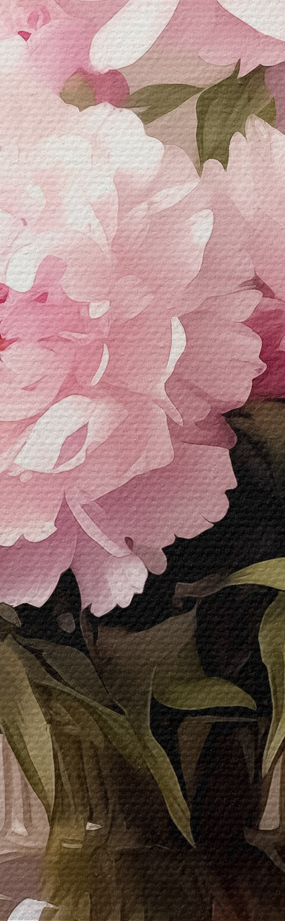Paveikslas Rožiniai bijūnai stiklinėje vazoje juodame fone, aliejinės tapybos imitacija, gėlės Nr s38482
