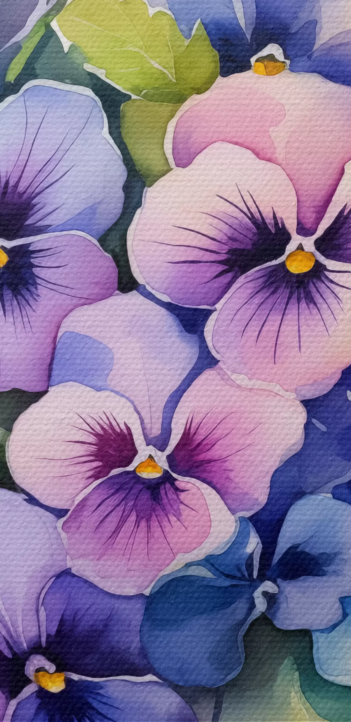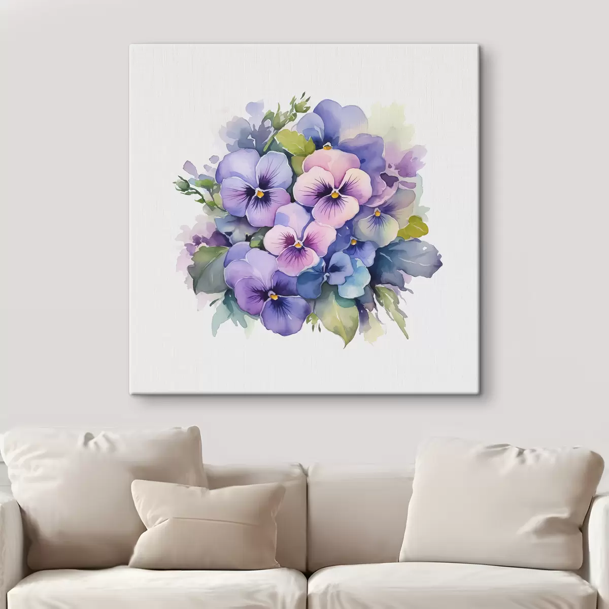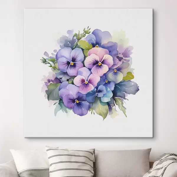 Paveikslas Violetinė akvarelės iliustracija, puokštė, gėlės, mėlyna, violetinė, žalia spalva Nr s38486