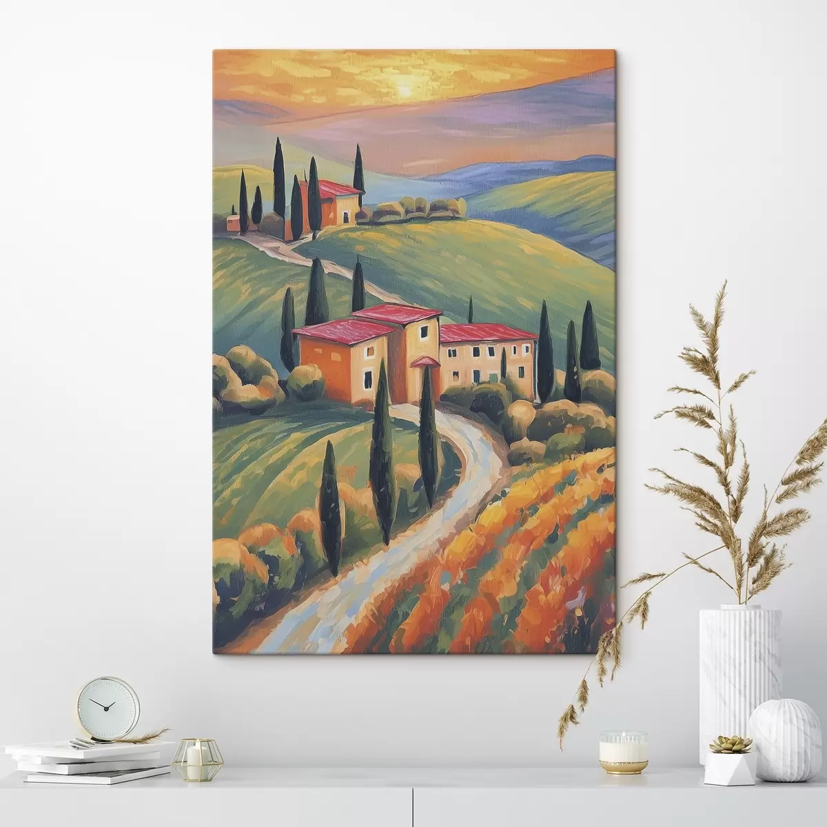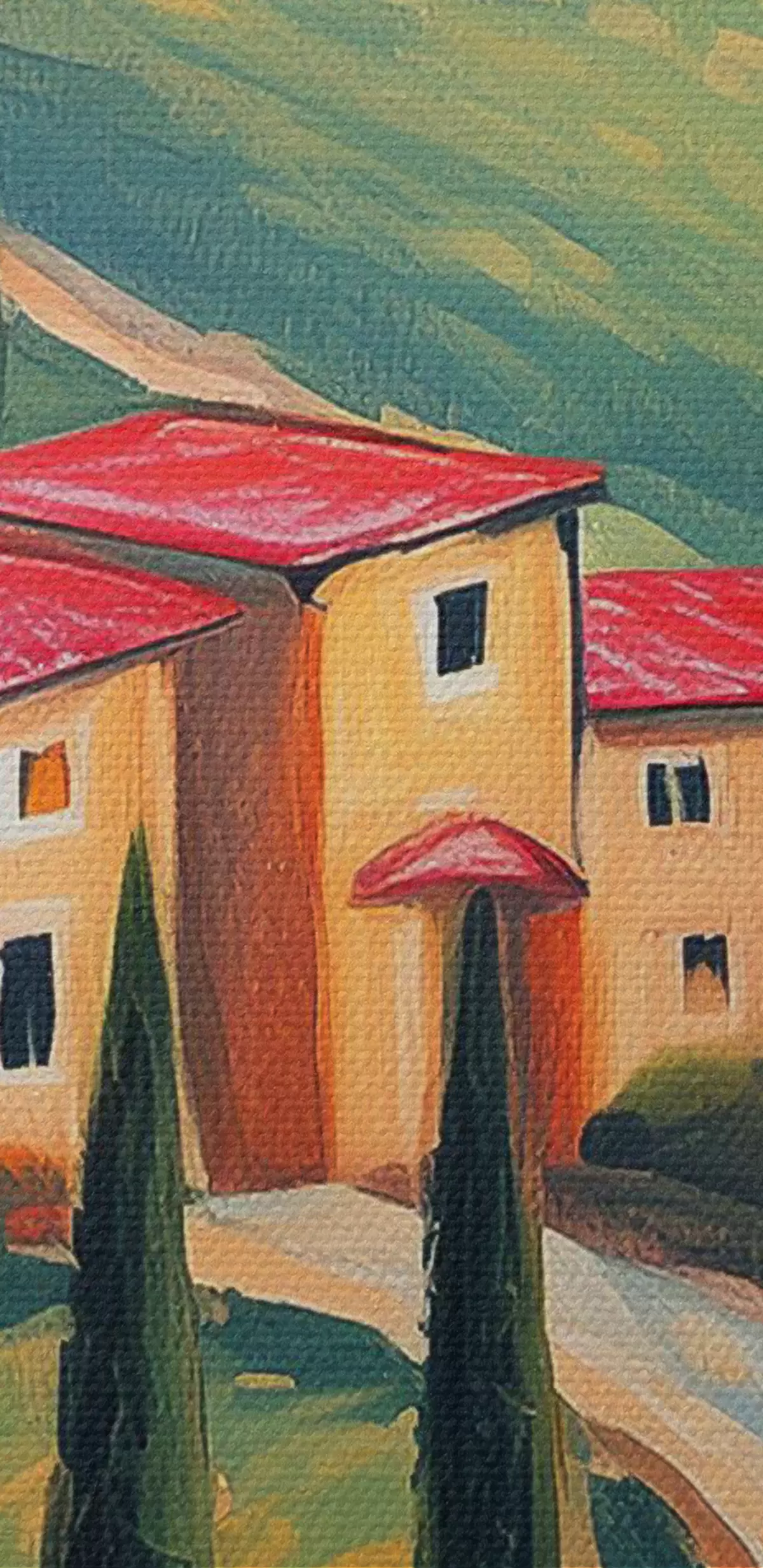 Paveikslas Toskanos peizažai, Italija, akrilo menas, seni namai, laukai, vasara Nr s38488