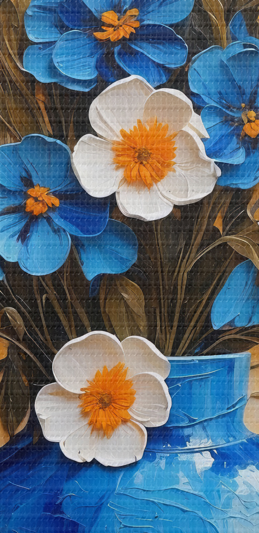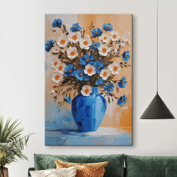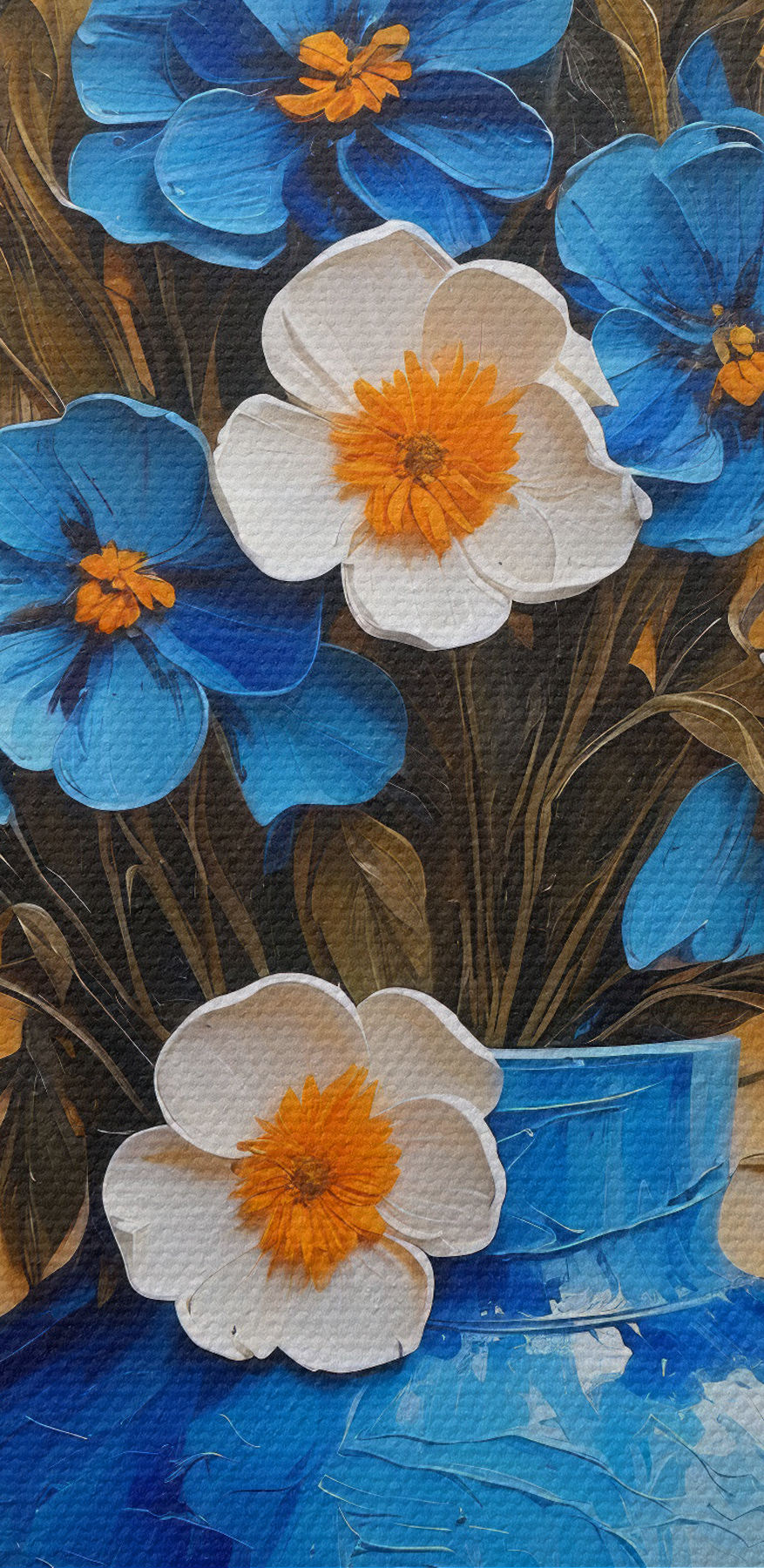 Paveikslas Gėlės mėlynoje vazoje abstrakčiame fone Nr s38584