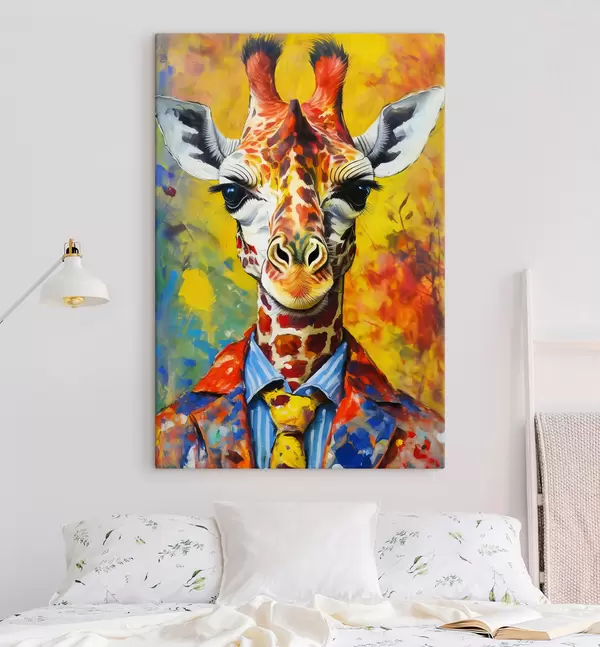 Paveikslas žirafos su kostiumu portretas geltoname fone Nr s38606