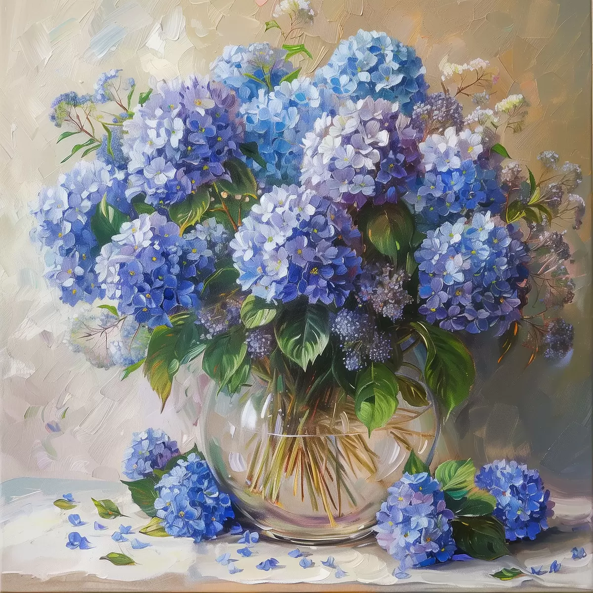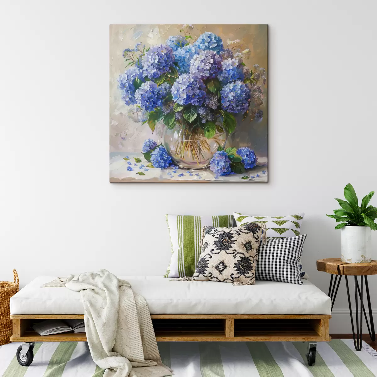 Paveikslas Mėlynos hortenzijos ant stalo Nr s38709
