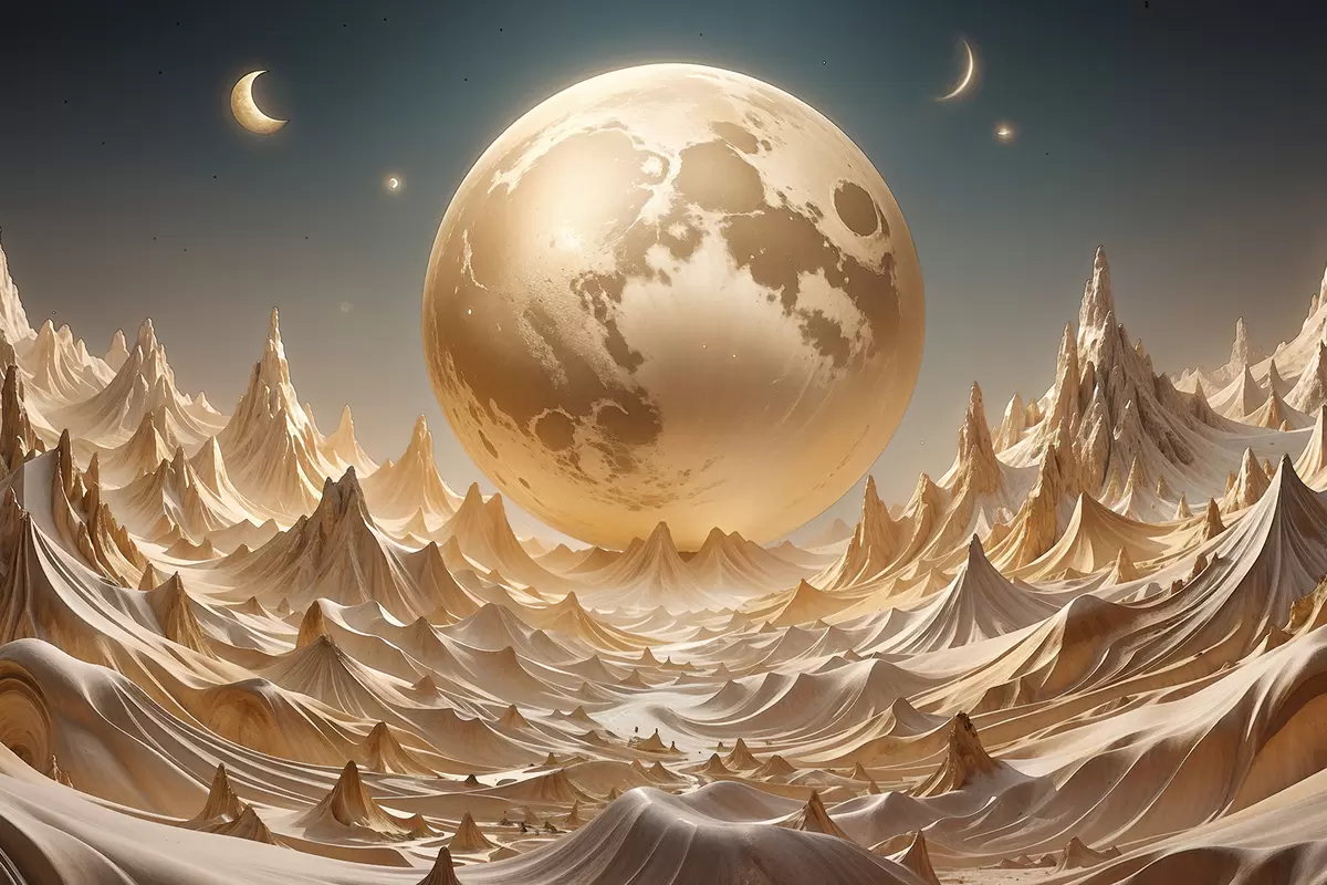 Paveikslas Švytinti pilnatis virš siurrealistinio, kalnuoto kraštovaizdžio su viršūnėmis Nr s38775