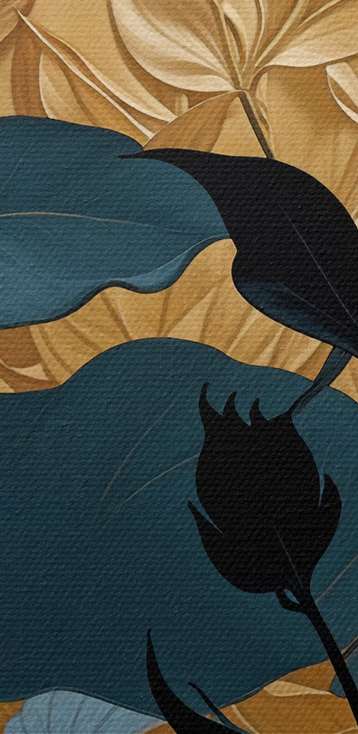 Paveikslas Abstrakti gėlių kompozicija su dideliais lapais ir tamsių siluetų formomis Nr s38822