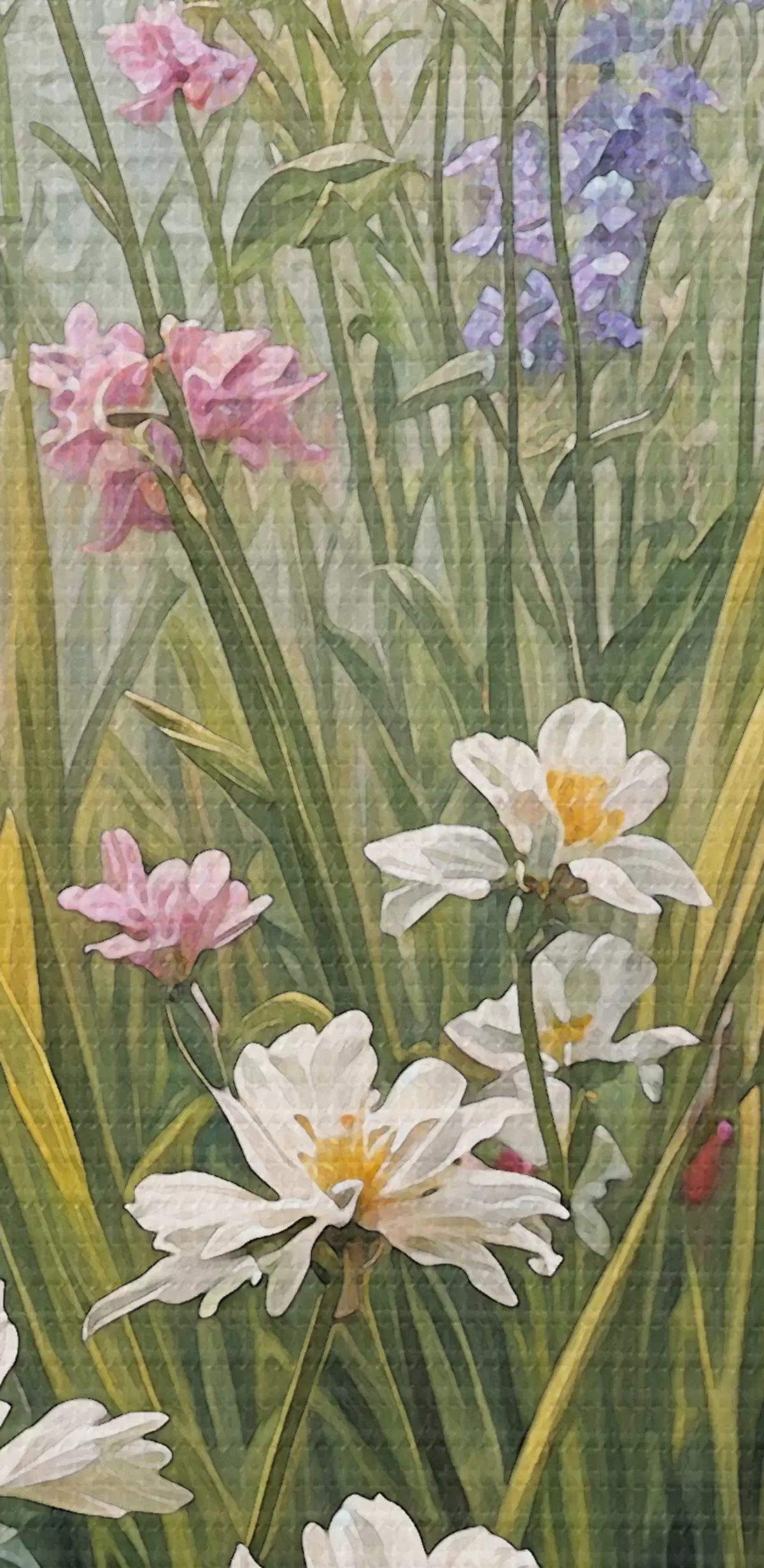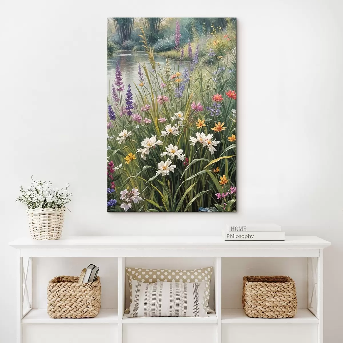 Paveikslas Laukinės gėlės ir aukštos žolės. Bendroje scenoje vaizduojamas gyvas, natūralus kraštovaizdis Nr s38829