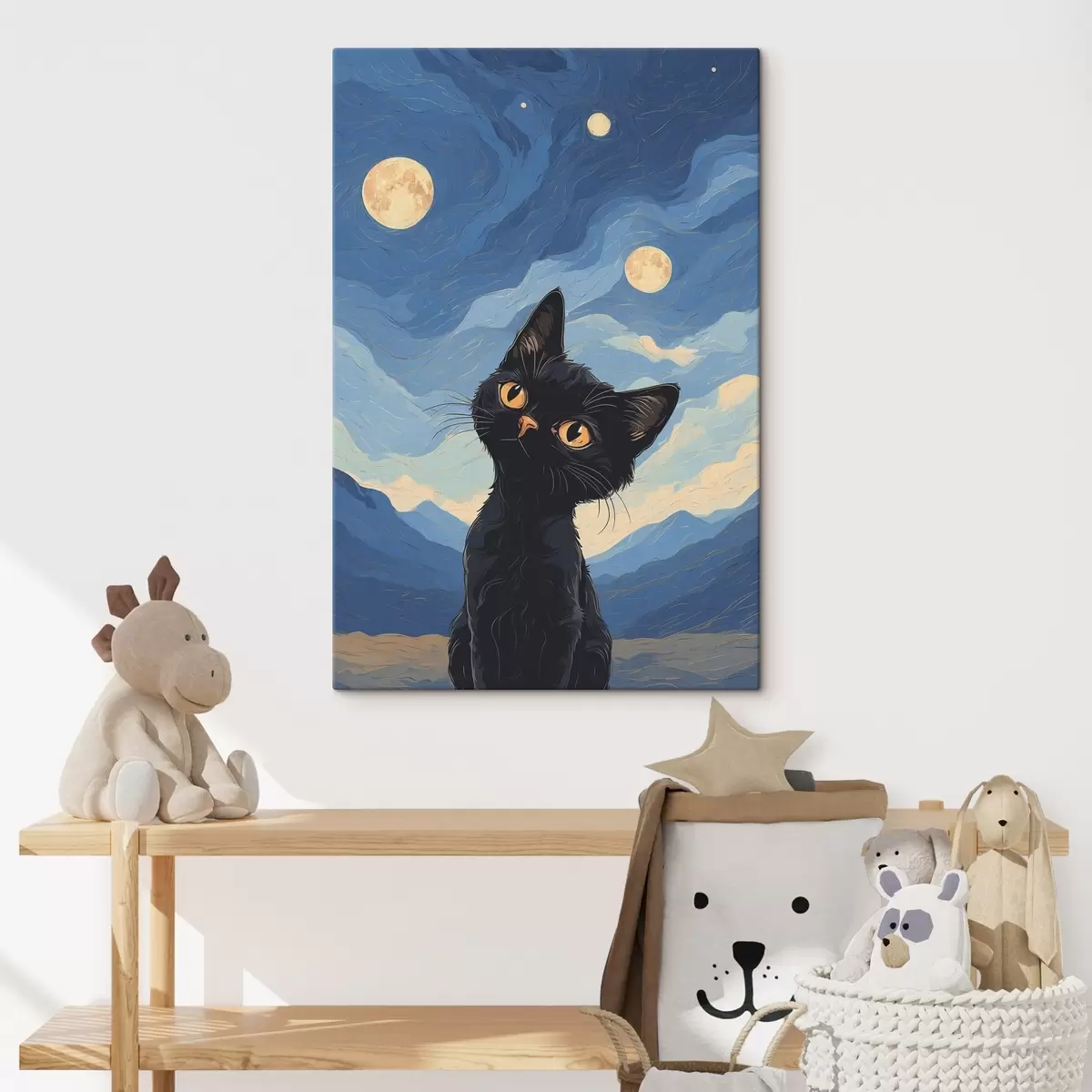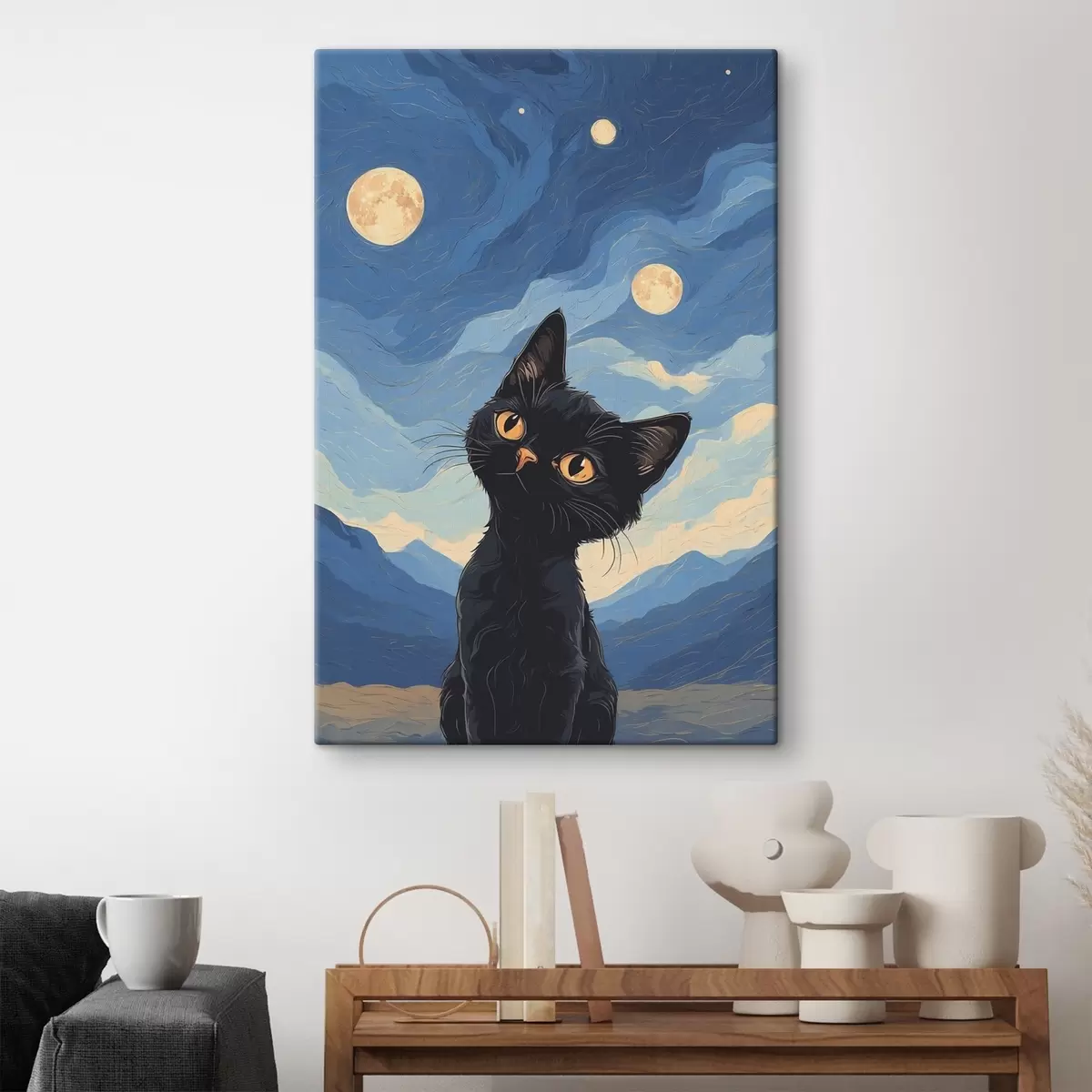 Paveikslas Smalsus katinas po žvaigždėtu dangumi Nr s38860