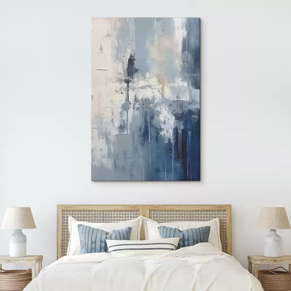 Paveikslas Abstraktus minimalistinis aliejinis paveikslas, trintas, geometrinis, beicinis, mėlynos ir baltos spalvos Nr s38906