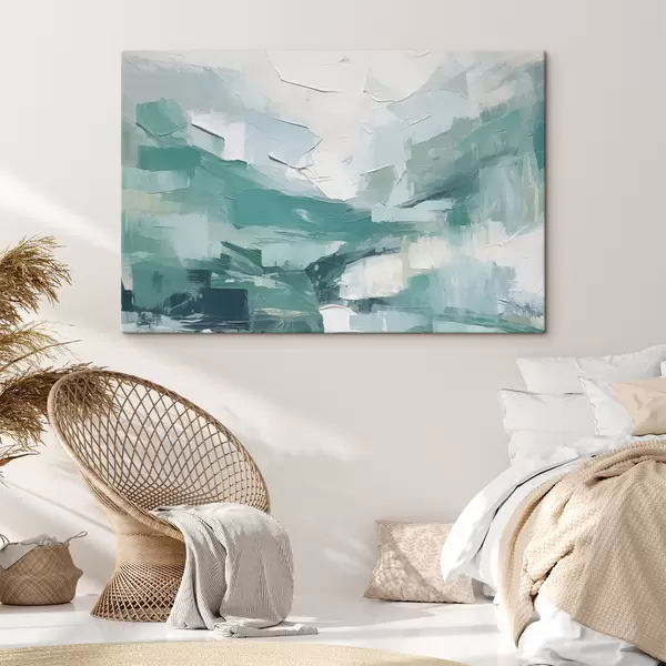 Paveikslas Mėlynos ir baltos spalvos stambių potėpių abstrakcija, aliejinės tapybos imitacija, minimalizmas Nr s38915