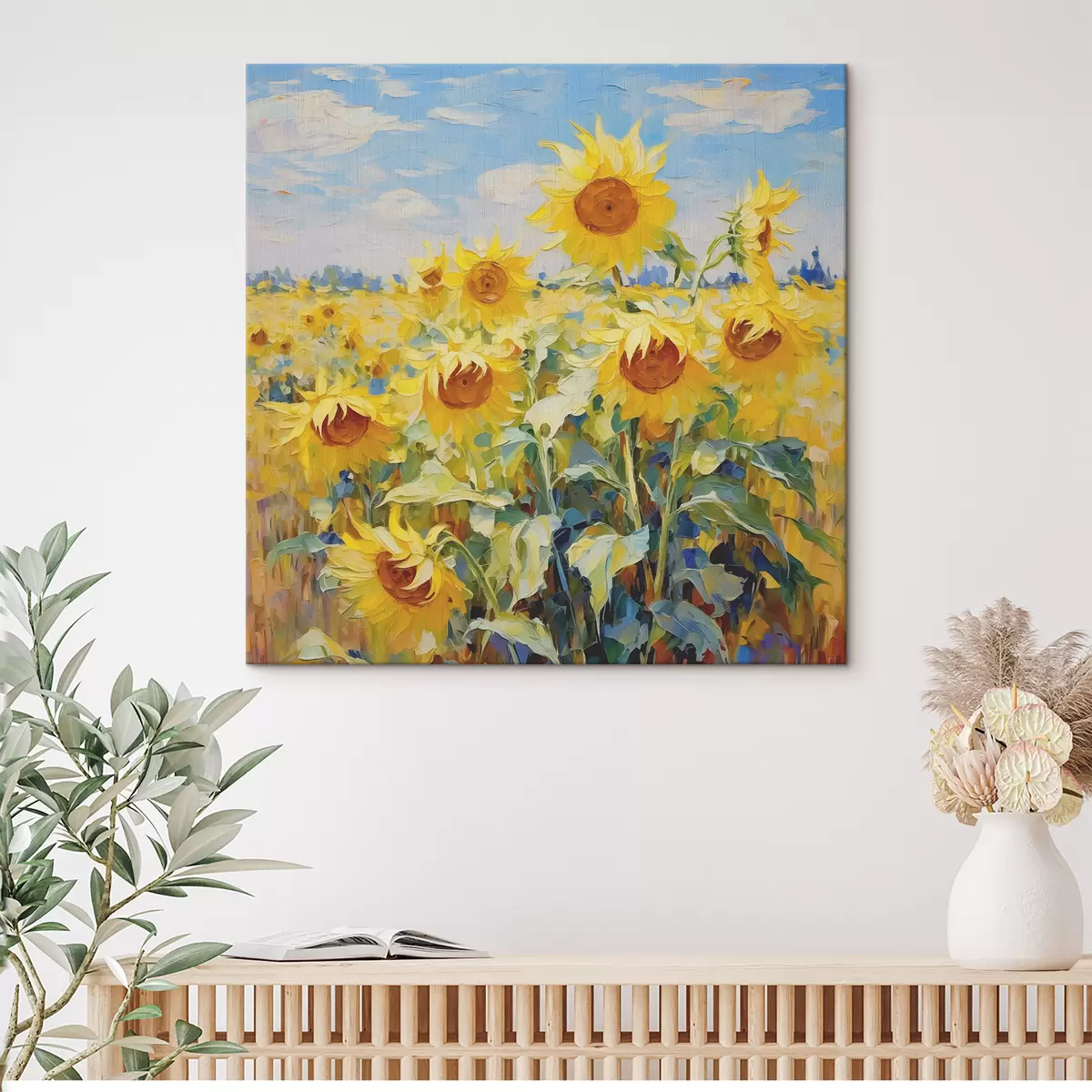 Paveikslas Saulėgrąžų aliejinės tapybos laukas, geltonos ir mėlynos spalvos Nr s38953