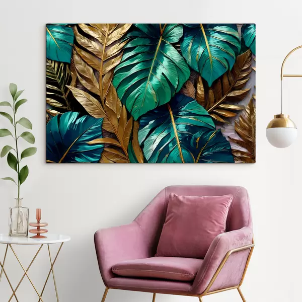 Paveikslas Akrilo tapyba su ryškiais atogrąžų lapais žalios ir žalsvos spalvos atspalviais Nr s38968