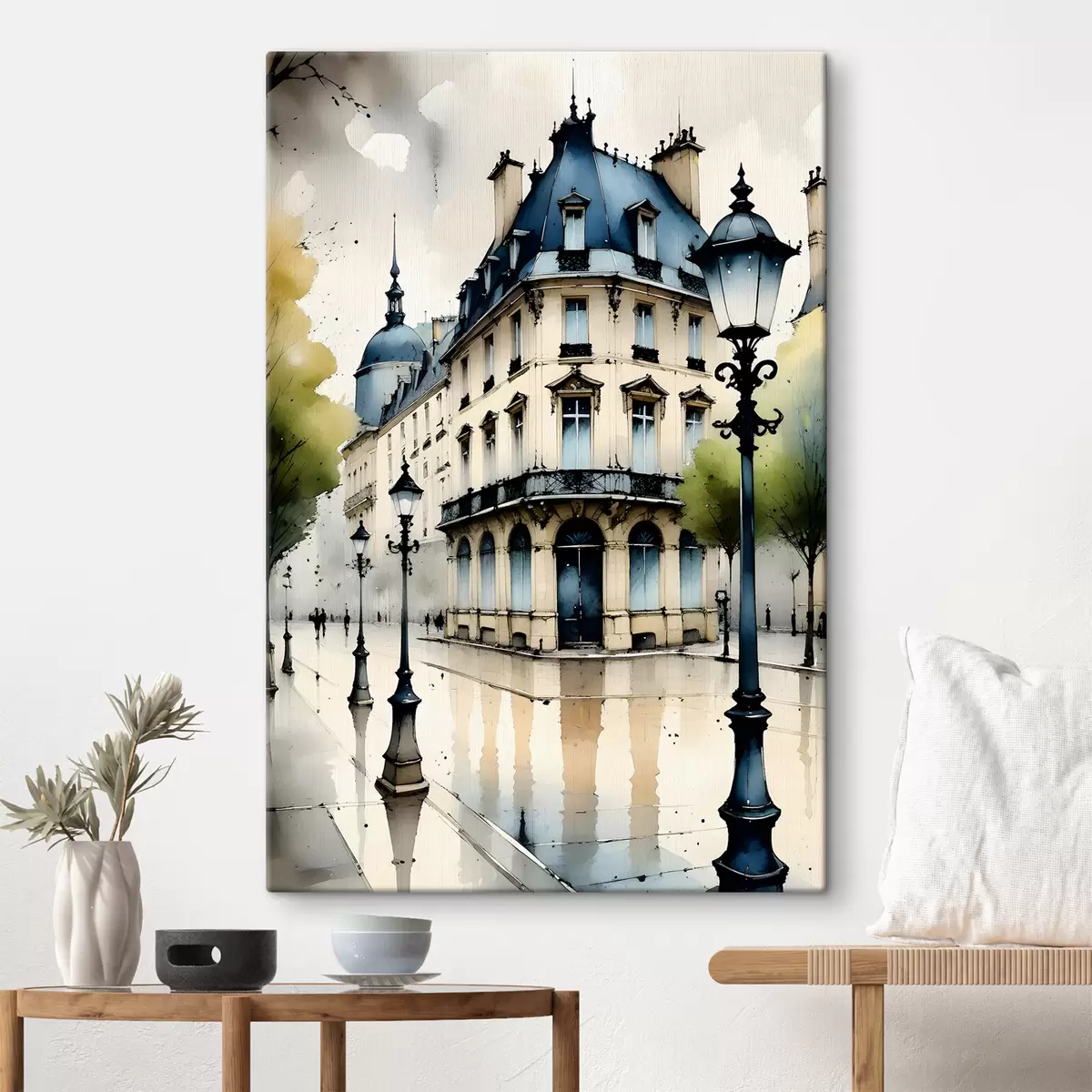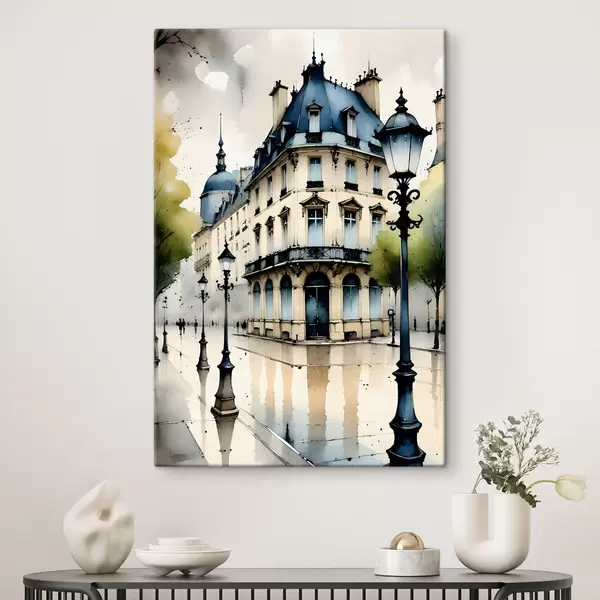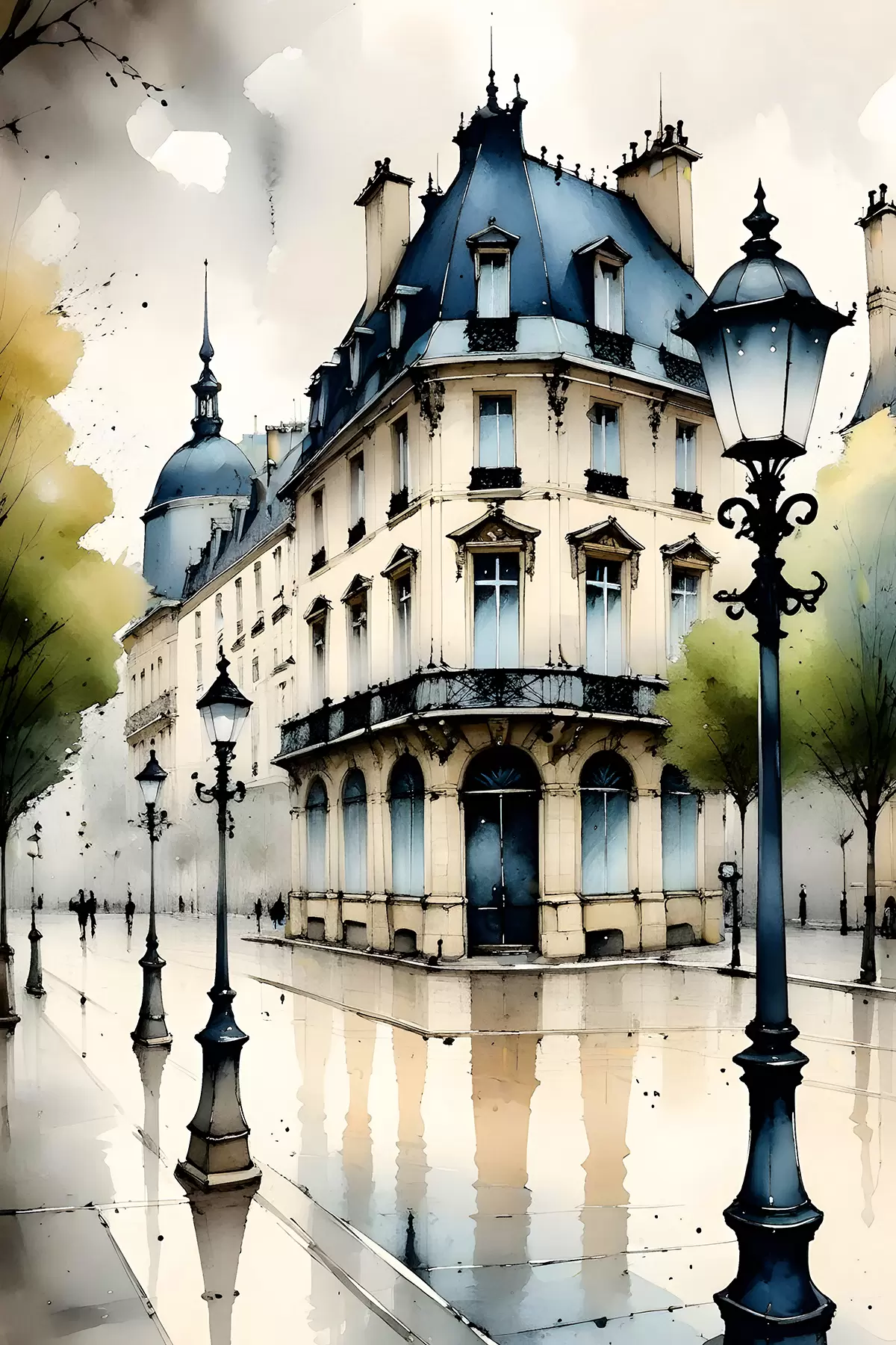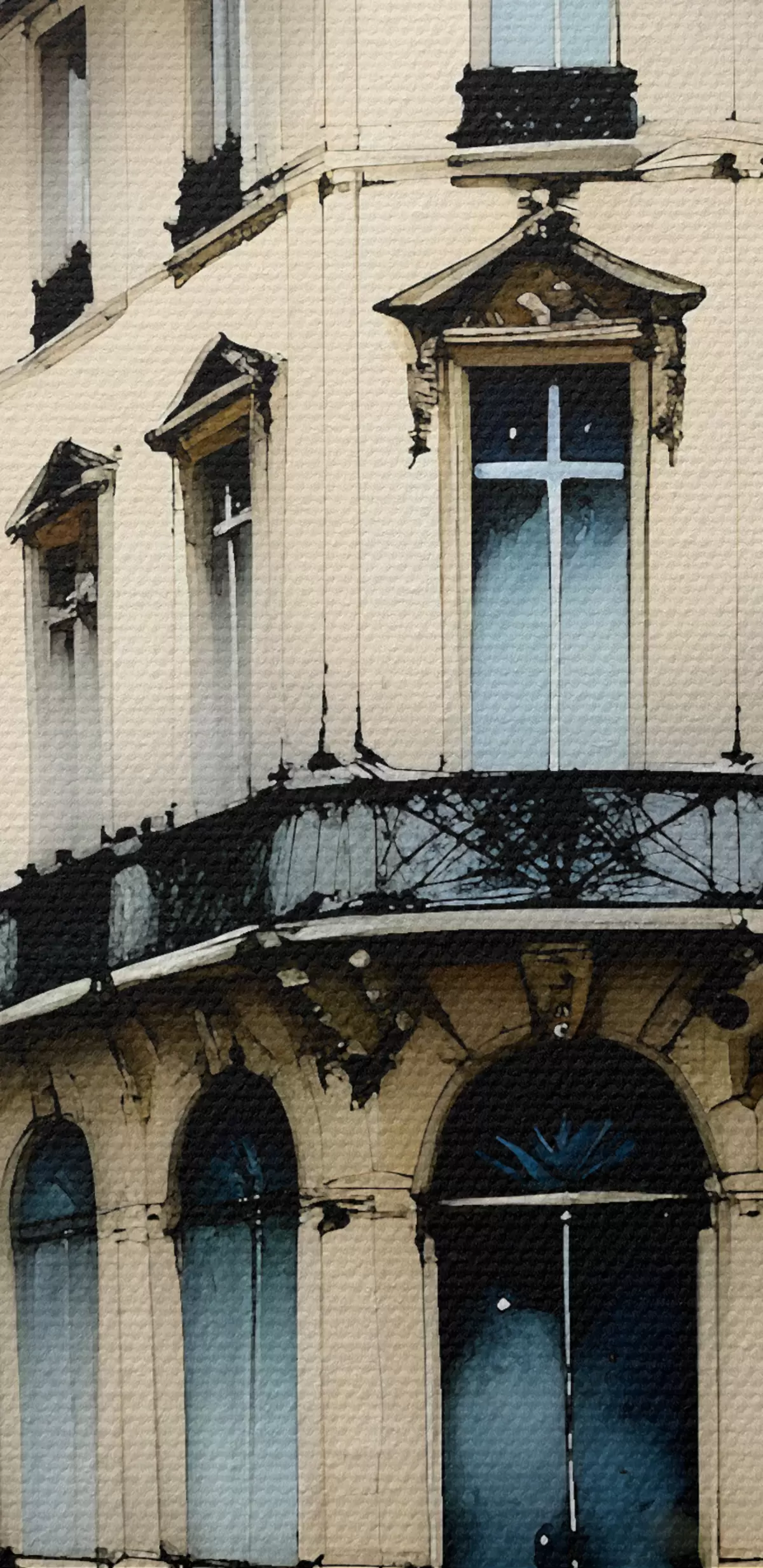 Paveikslas Istorinio pastato tapyba akvarele su lenktu fasadu ir dekoratyviniais architektūros elementais Nr s38975