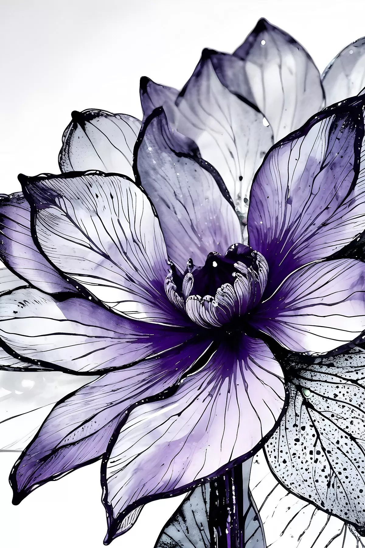 Paveikslas Didelė, ryški violetinė gėlė su subtiliais, įmantriais žiedlapiais tamsiame fone Nr s38982