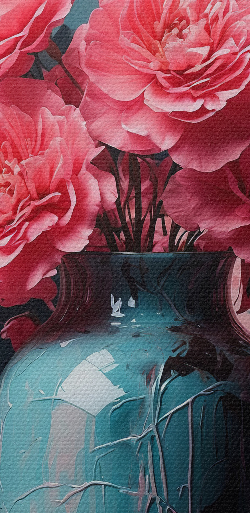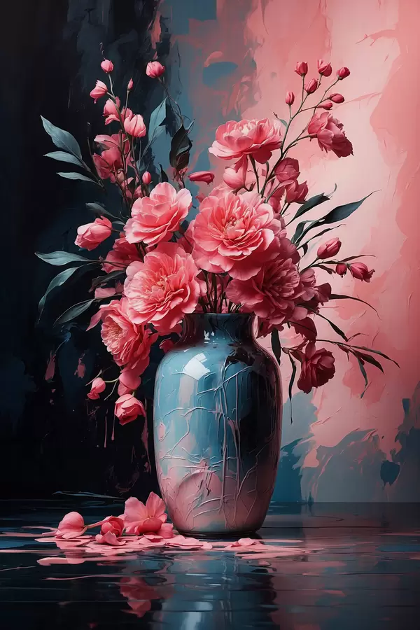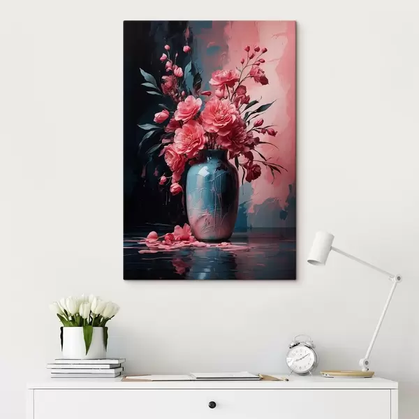 Paveikslas Rožinės gėlės vazoje rožiniame fone Nr s38996