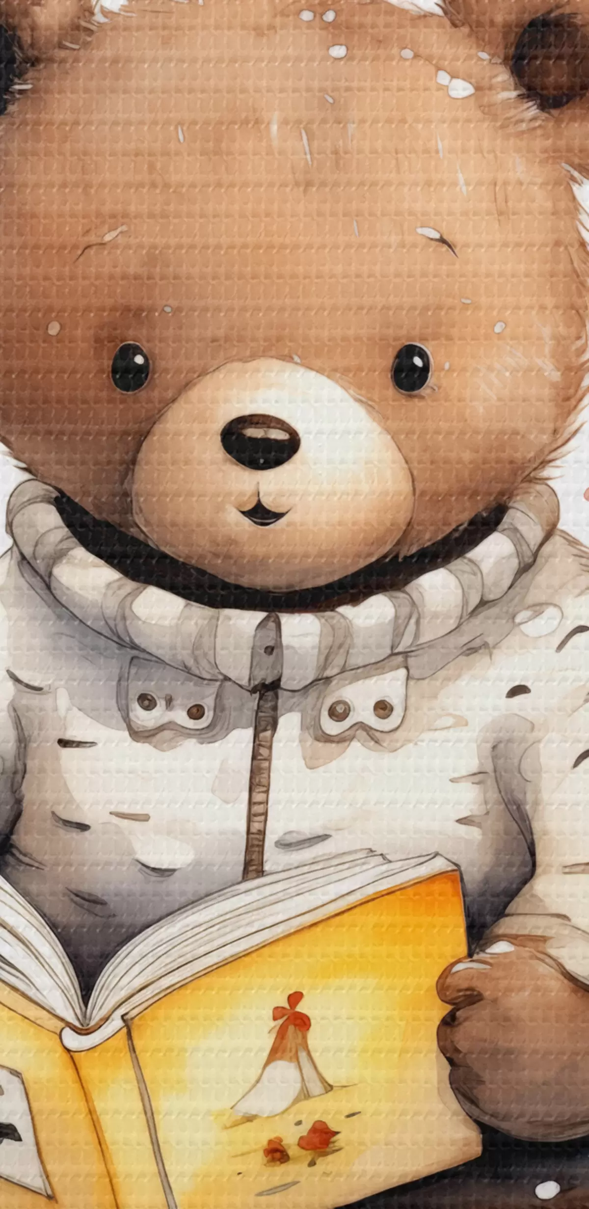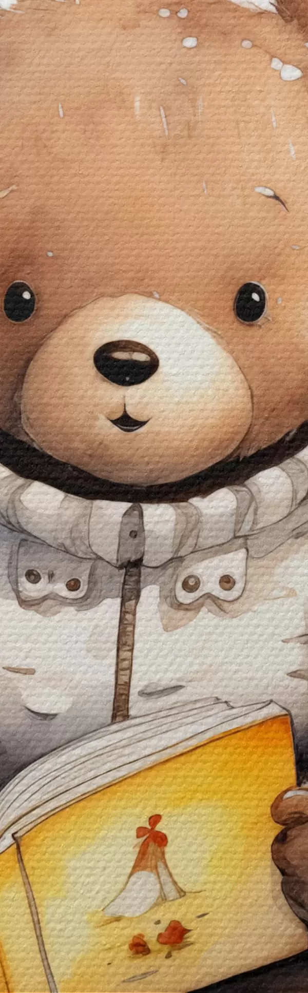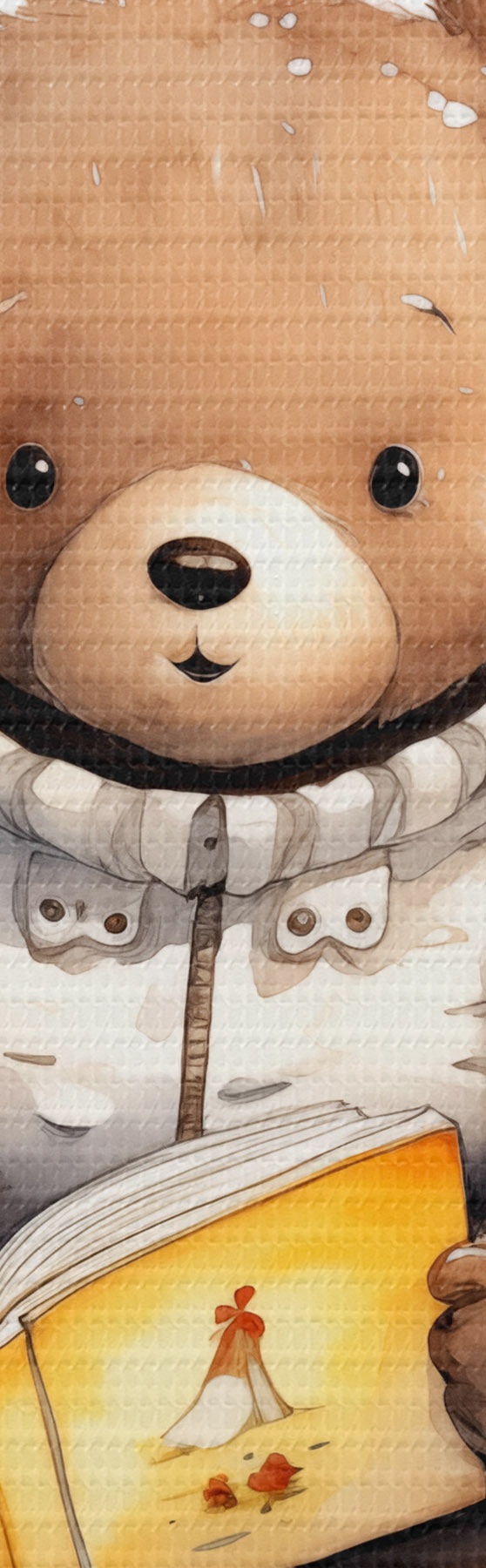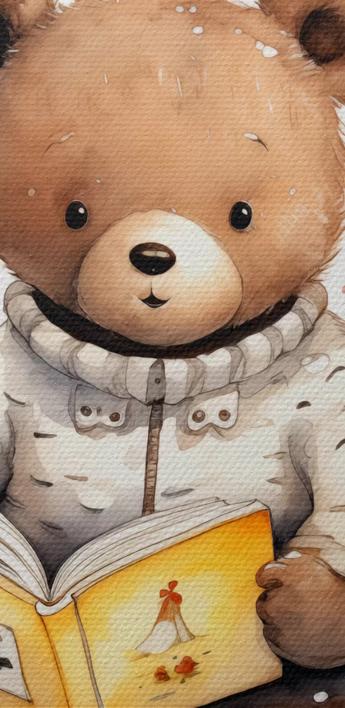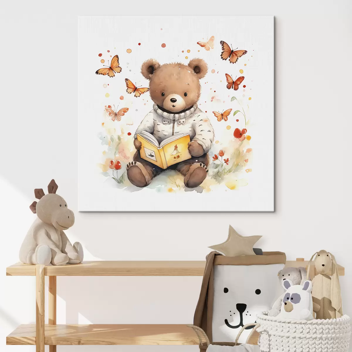 Paveikslas Rudojo lokio jauniklis megztinyje skaito knygą, apsuptas akvarelinių drugelių Nr s39025