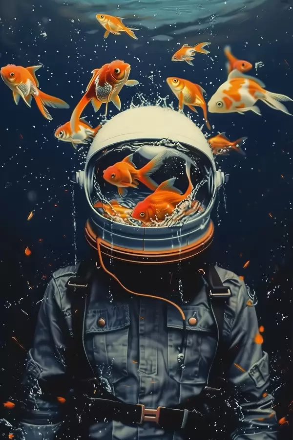 Paveikslas Astronautas plaukioja su žaismingomis žuvimis Nr s39041