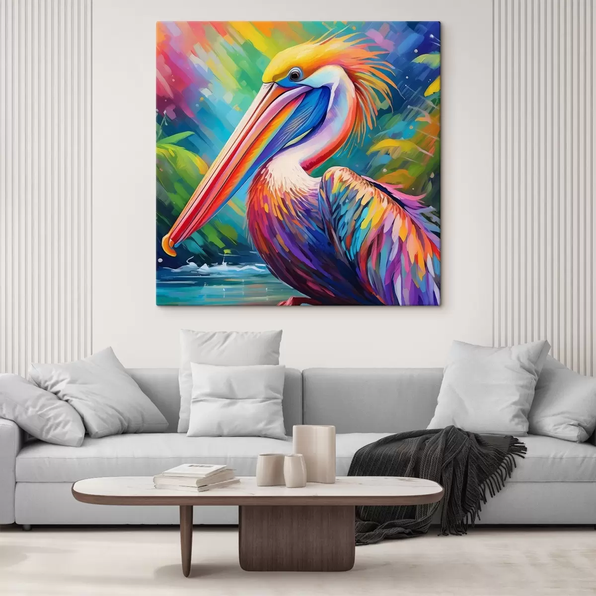 Paveikslas Ryškus pelikanas prieš spalvingą foną Nr s39054