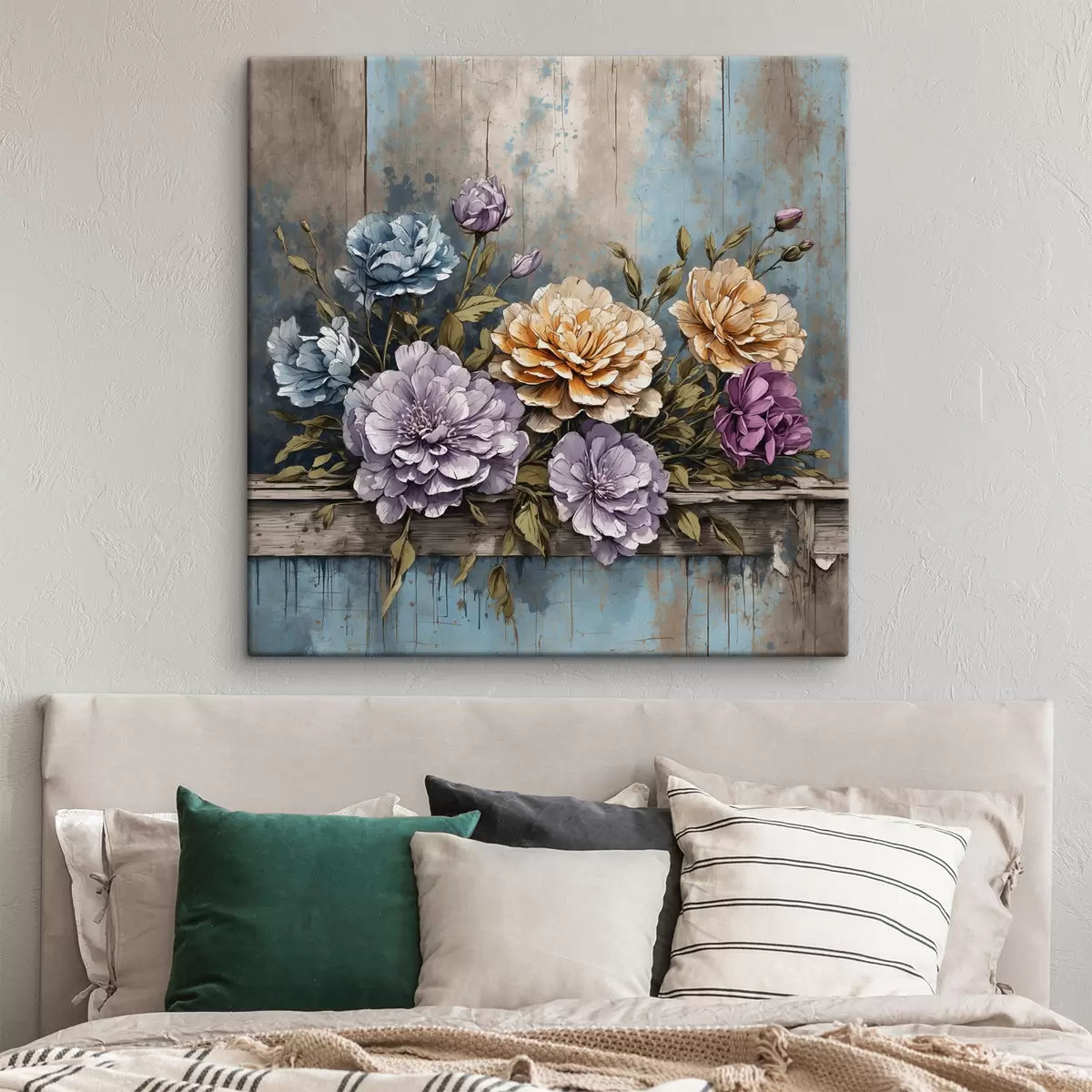 Paveikslas Gėlės ir lapai ant senos medinės lentynos Nr s39169