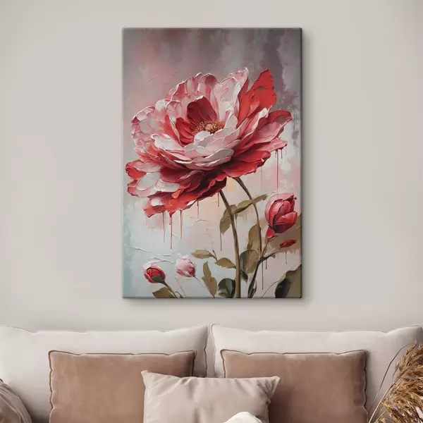 Paveikslas Raudona gėlė baltai pilkame fone Nr s39173