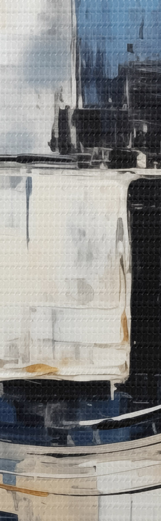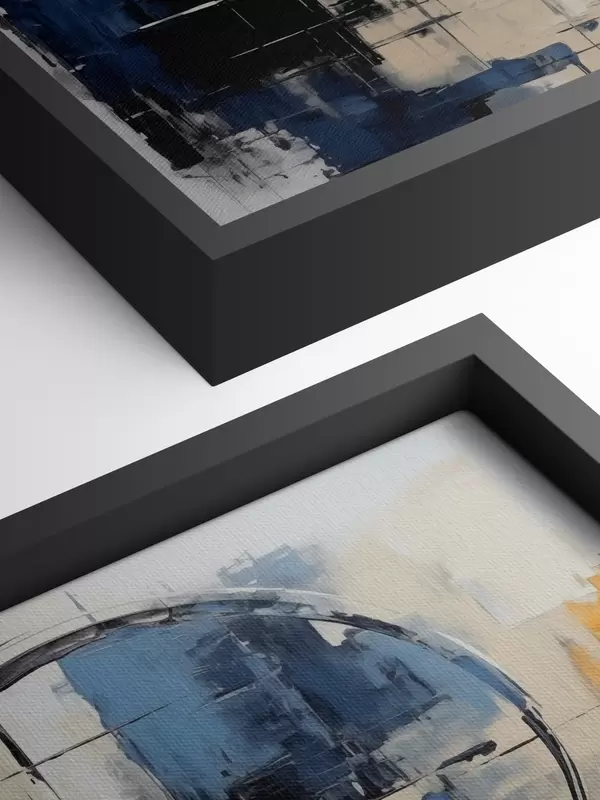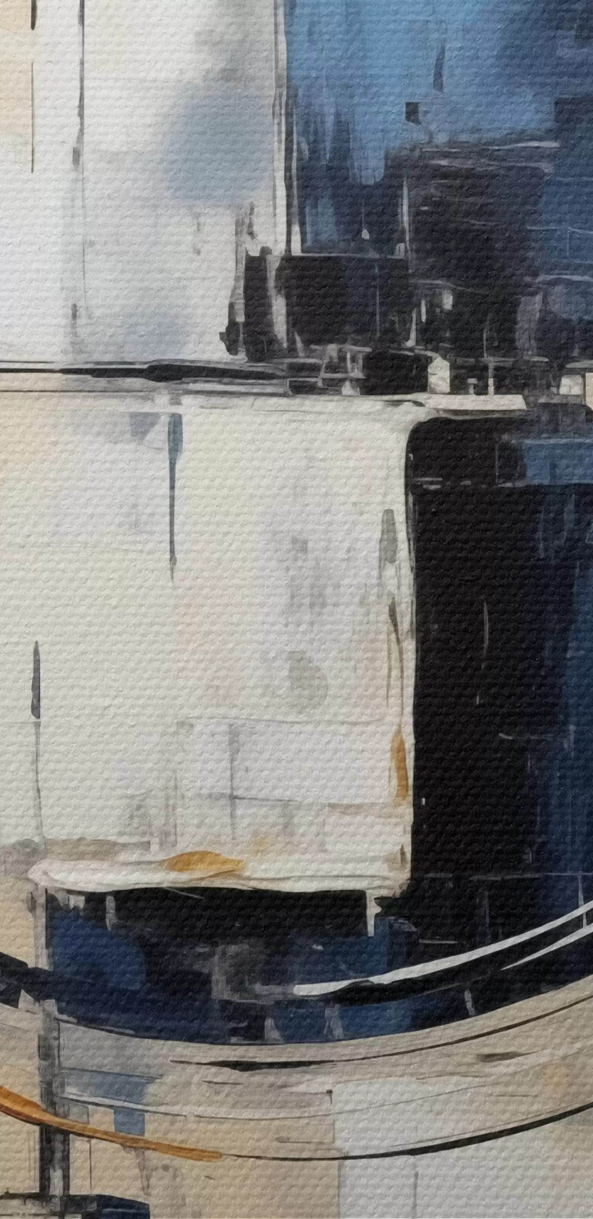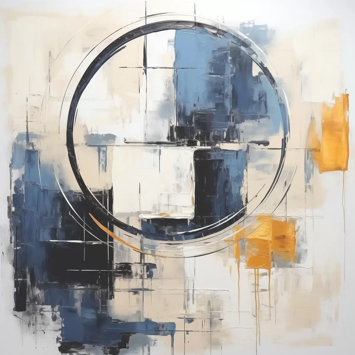 Paveikslas Abstraktus kubizmas, mėlynos, oranžinės, baltos spalvos potėpiai, apskrita figūra Nr s39179