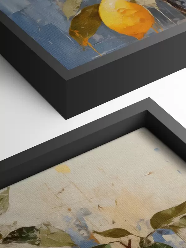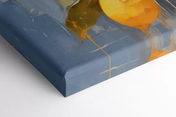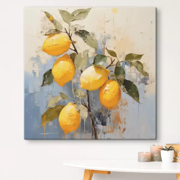Paveikslas Šaka su prinokusių citrinų aliejumi tapyba abstraktus menas, geltona, mėlyna ir žalia spalva Nr s39186