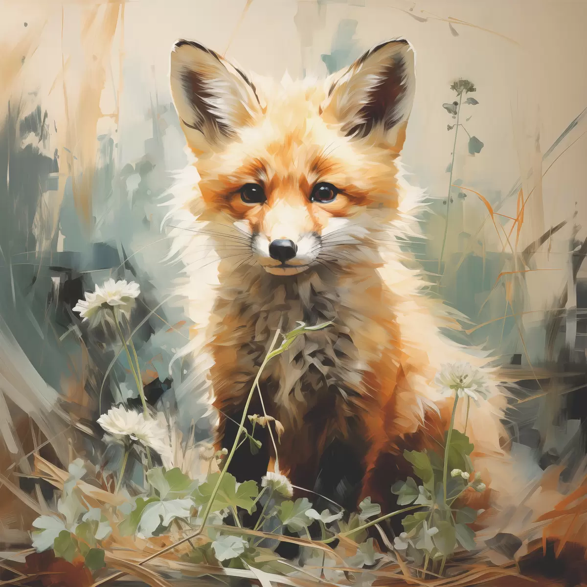 Paveikslas Raudonoji lapė sėdi sausoje žolėje ant žalio fono aliejinės tapybos Nr s39191