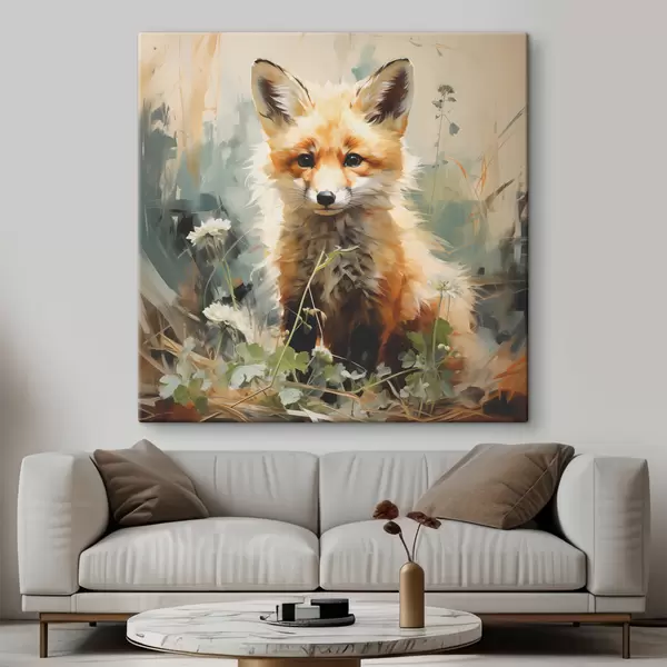 Paveikslas Raudonoji lapė sėdi sausoje žolėje ant žalio fono aliejinės tapybos Nr s39191